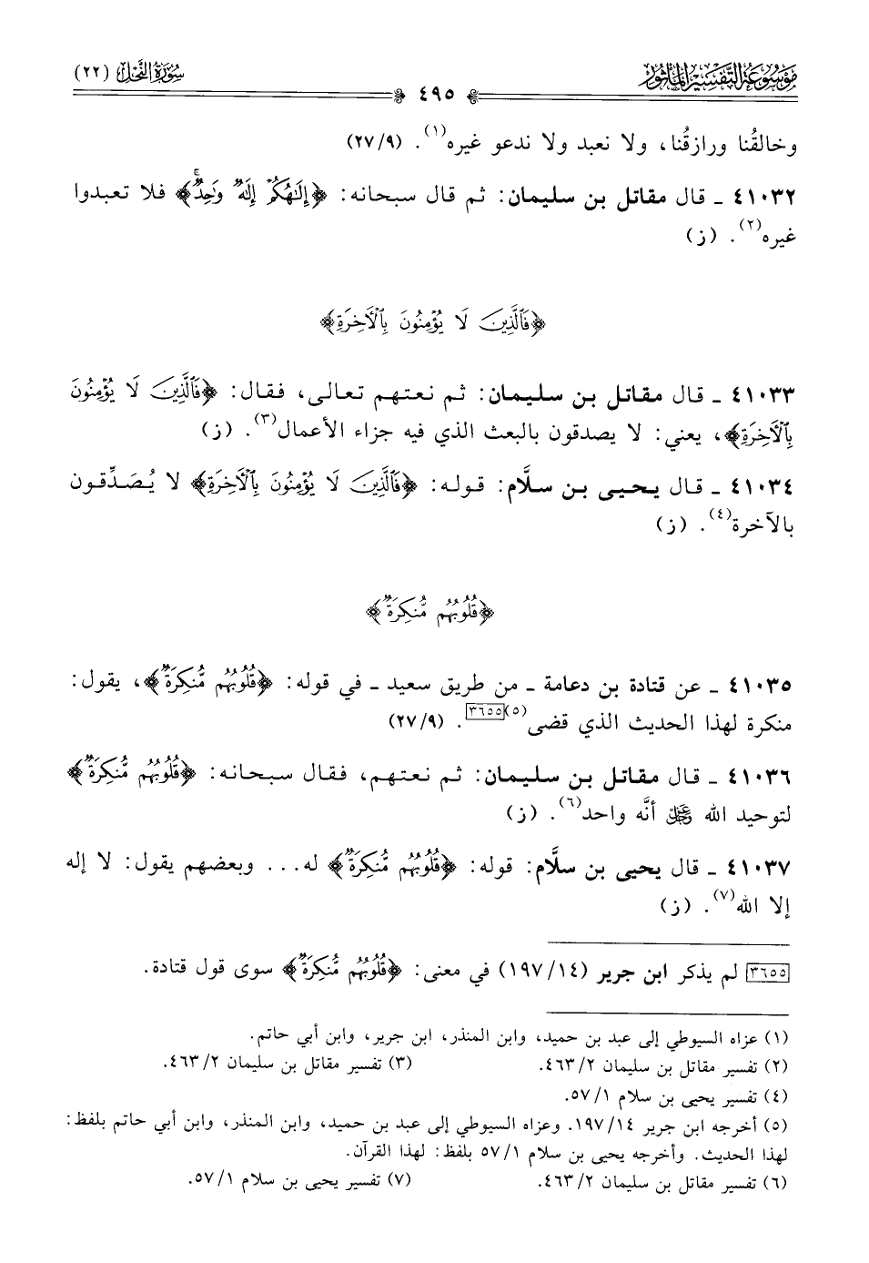 ٤١٠٣٧ - قال يحيى بن سلّام: قوله: {قلوبهم منكرة} له ... وبعضهم يقول: لا إله إلا الله (¬٧). (ز)