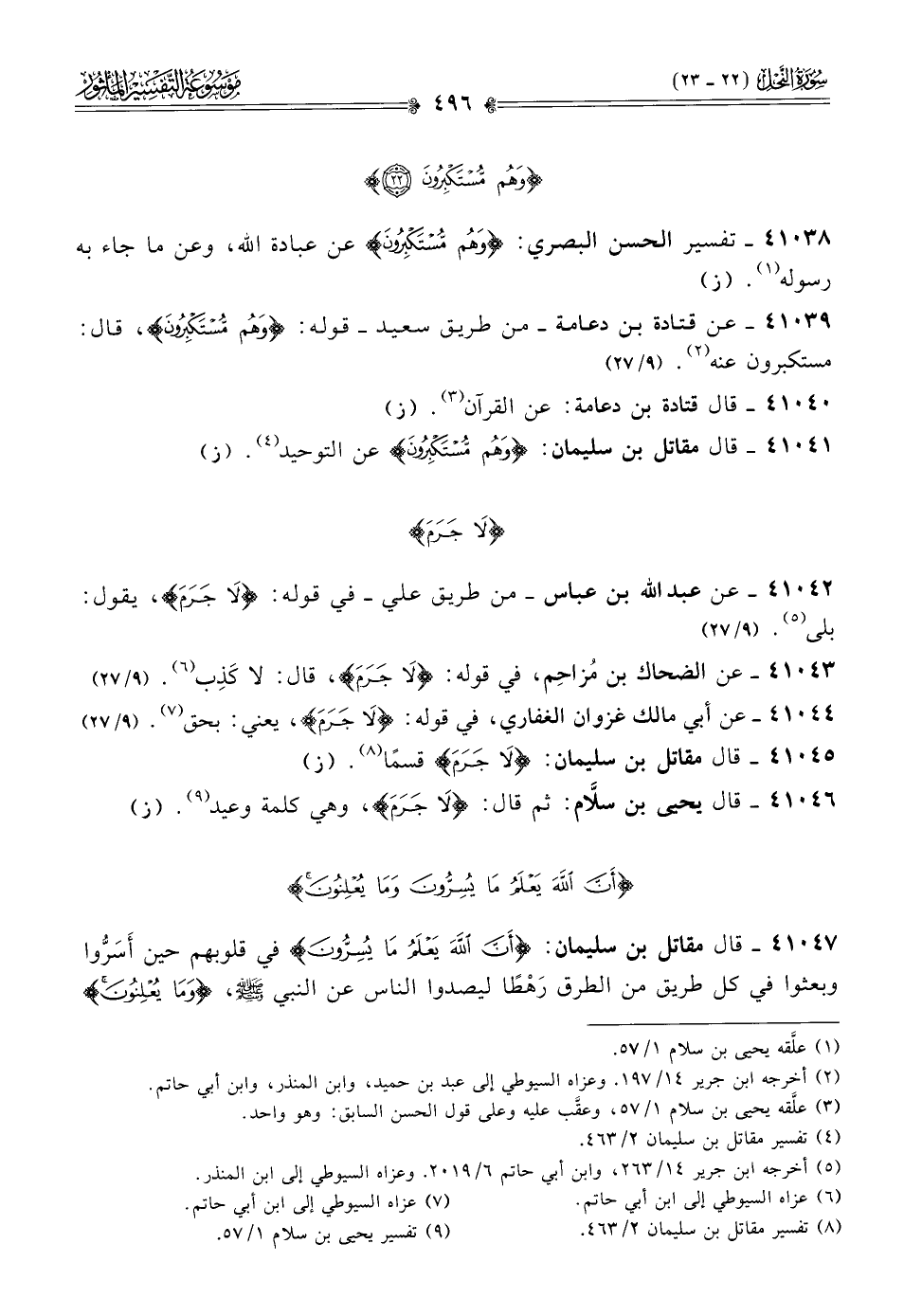 ٤١٠٤٦ - قال يحيى بن سلّام: ثم قال: {لا جرم}، وهي كلمة وعيد (¬٩). (ز)