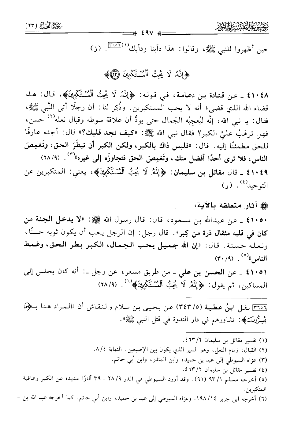 (¬٥) أخرجه مسلم ١/ ٩٣ (٩١). وقد أورد السيوطي في الدر ٩/ ٢٨ - ٣٩ آثارًا عديدة عن الكبر وعاقبة المتكبرين.
