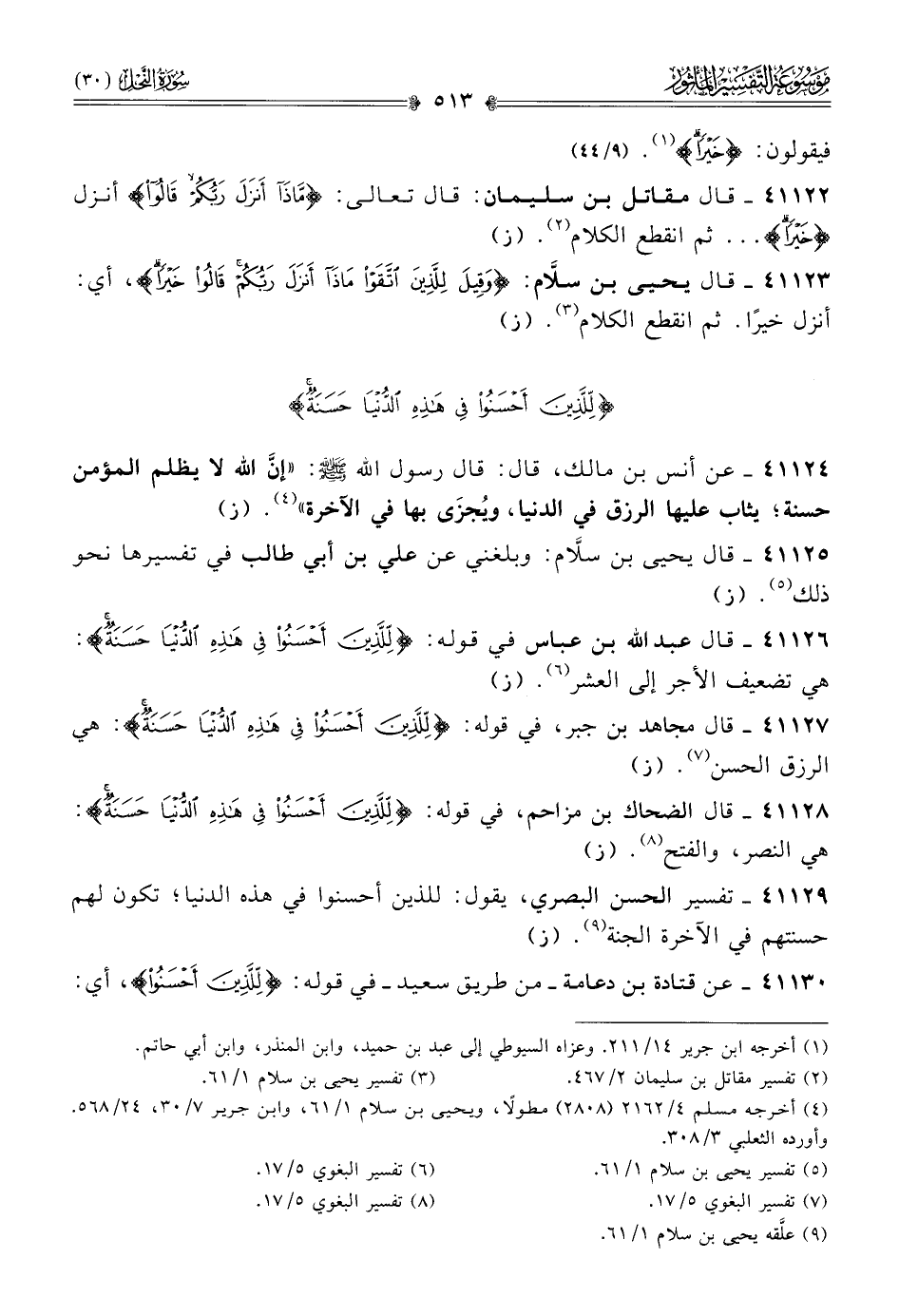 ٤١١٣٠ - عن قتادة بن دعامة -من طريق سعيد- في قوله: {للذين أحسنوا}، أي: