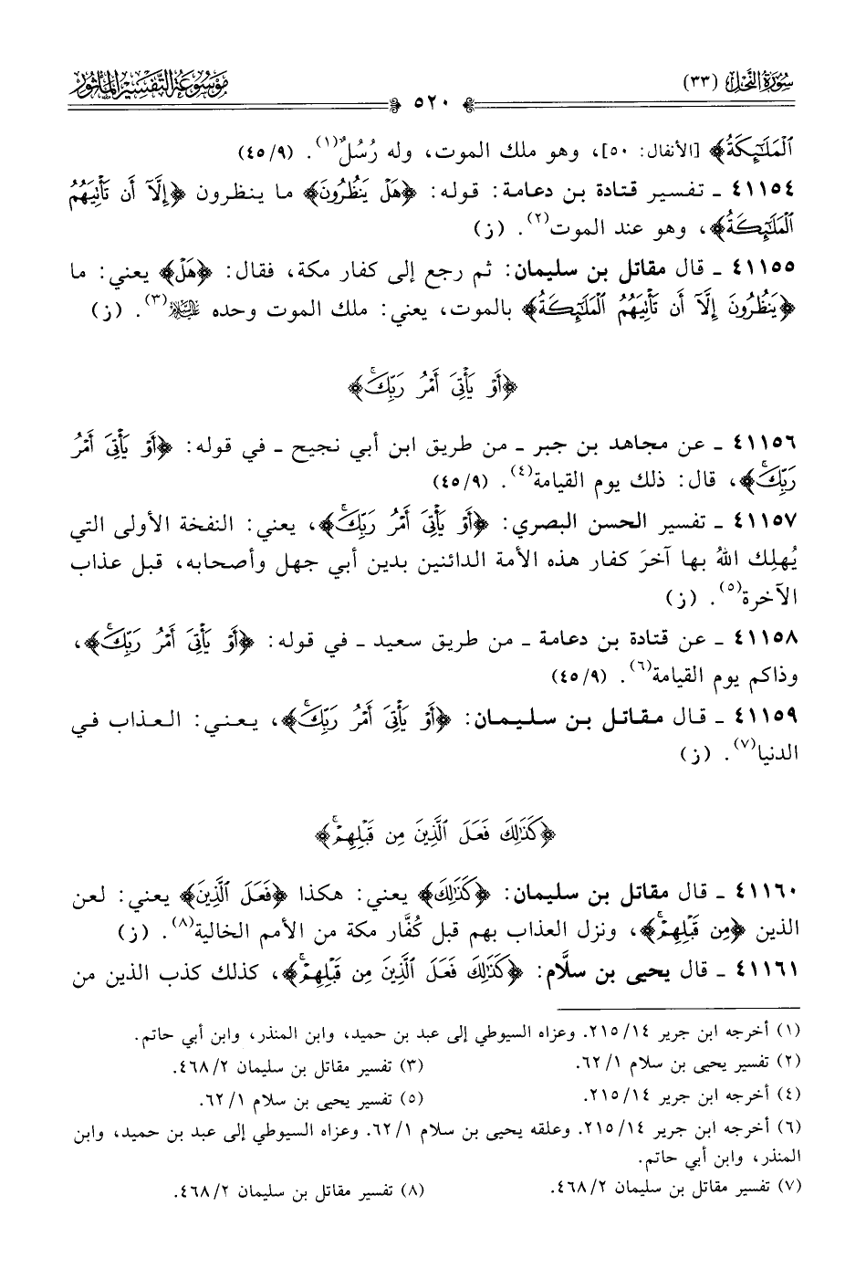 ٤١١٥٤ - تفسير قتادة بن دعامة: قوله: {هل ينظرون} ما ينظرون {إلا أن تأتيهم الملائكة}، وهو عند الموت (¬٢). (ز)