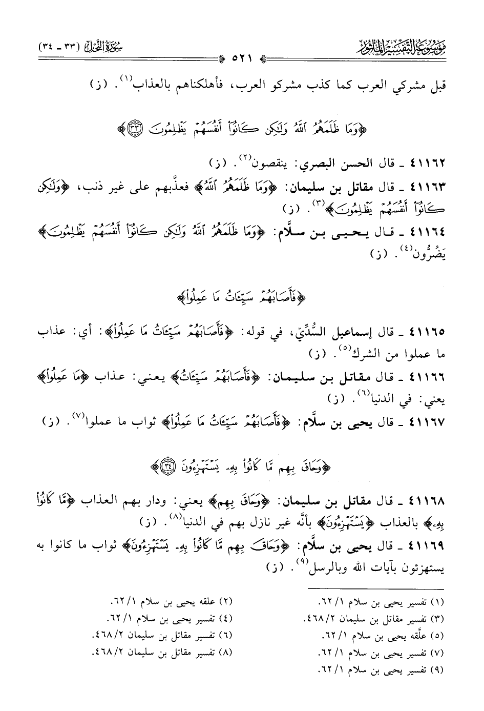 ٤١١٦٧ - قال يحيى بن سلّام: {فأصابهم سيئات ما عملوا} ثواب ما عملوا (¬٧). (ز)