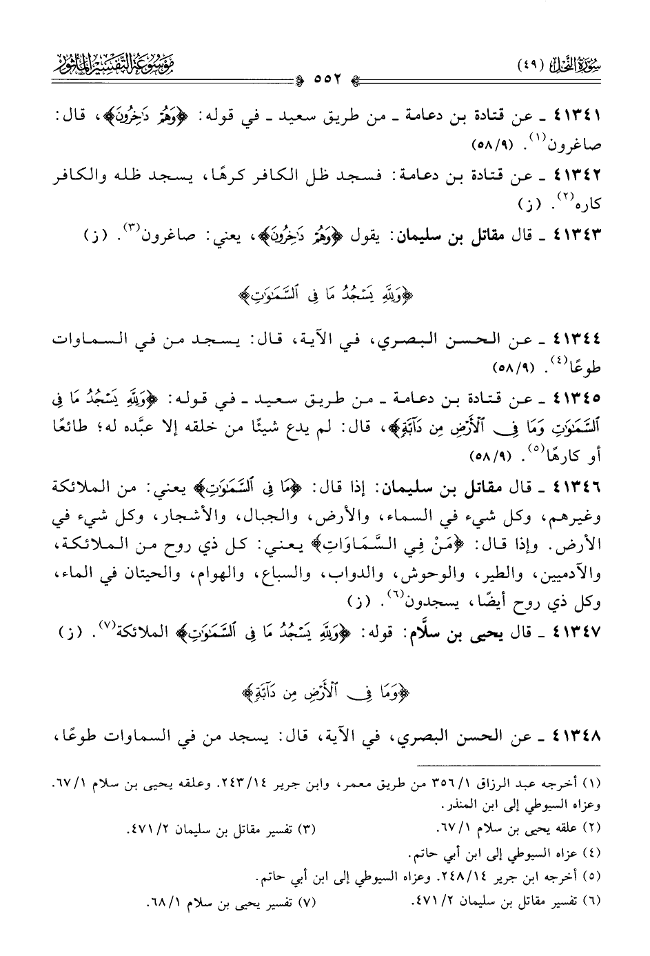 ٤١٣٤٢ - عن قتادة بن دعامة: فسجد ظل الكافر كرهًا، يسجد ظله والكافر كاره (¬٢). (ز)