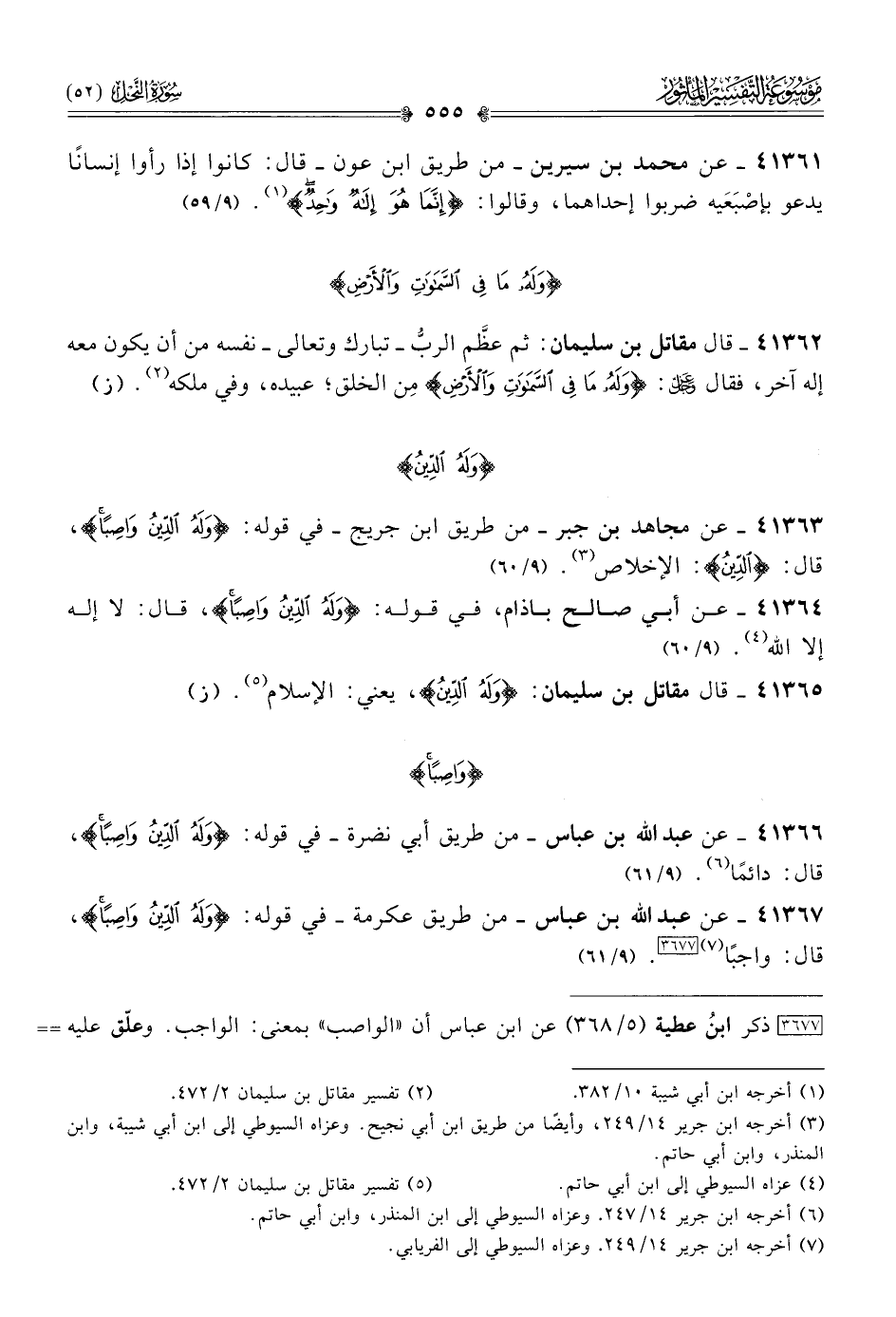 ٤١٣٦٣ - عن مجاهد بن جبر -من طريق ابن جريج- في قوله: {وله الدّين واصِبًا}، قال: {الدّين}: الإخلاص (¬٣). (٩/ ٦٠)