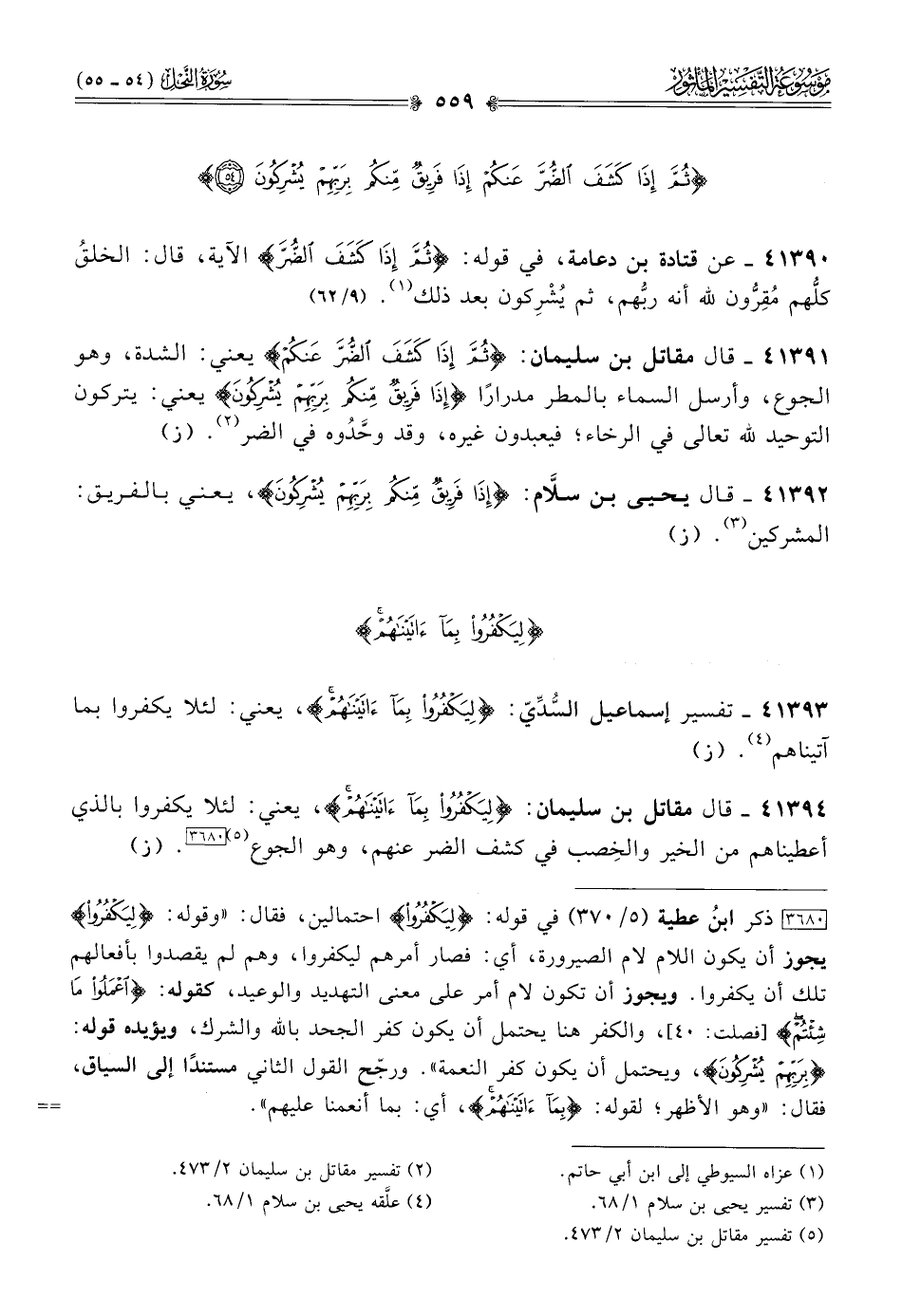 (¬٥) تفسير مقاتل بن سليمان ٢/ ٤٧٣.