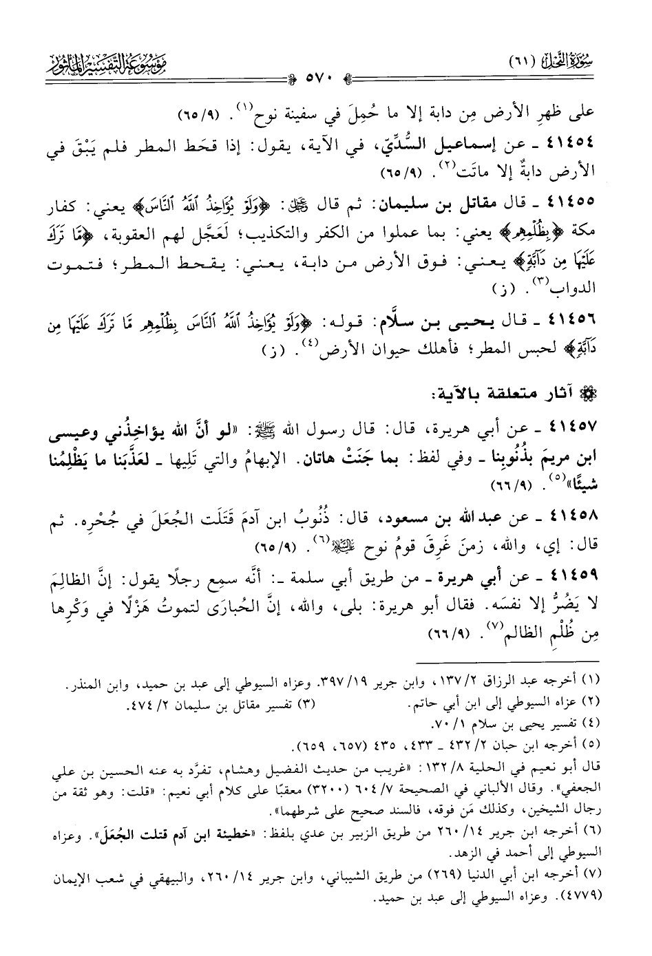 (¬٦) أخرجه ابن جرير ١٤/ ٢٦٠ من طريق الزبير بن عدي بلفظ: «خطيئة ابن آدم قتلت الجُعَلَ». وعزاه السيوطي إلى أحمد في الزهد.