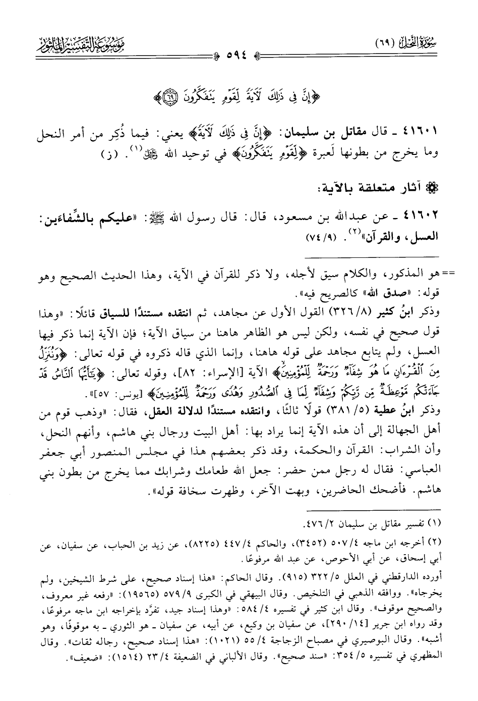 ٤١٦٠١ - قال مقاتل بن سليمان: {إنَّ فِي ذلِكَ لَآيَةً} يعني: فيما ذُكِر من أمر النحل وما يخرج من بطونها لَعبرة {لِقَوْمٍ يَتَفَكَّرُونَ} في توحيد الله - عز وجل - (¬١). (ز)