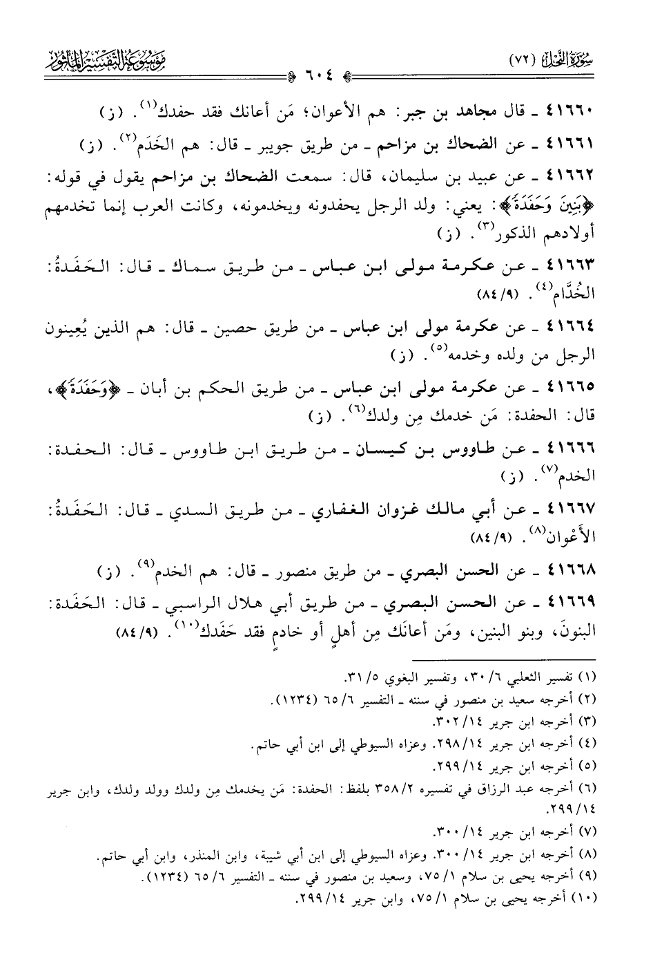 ٤١٦٦٦ - عن طاووس بن كيسان -من طريق ابن طاووس- قال: الحفدة: الخدم (¬٧). (ز)