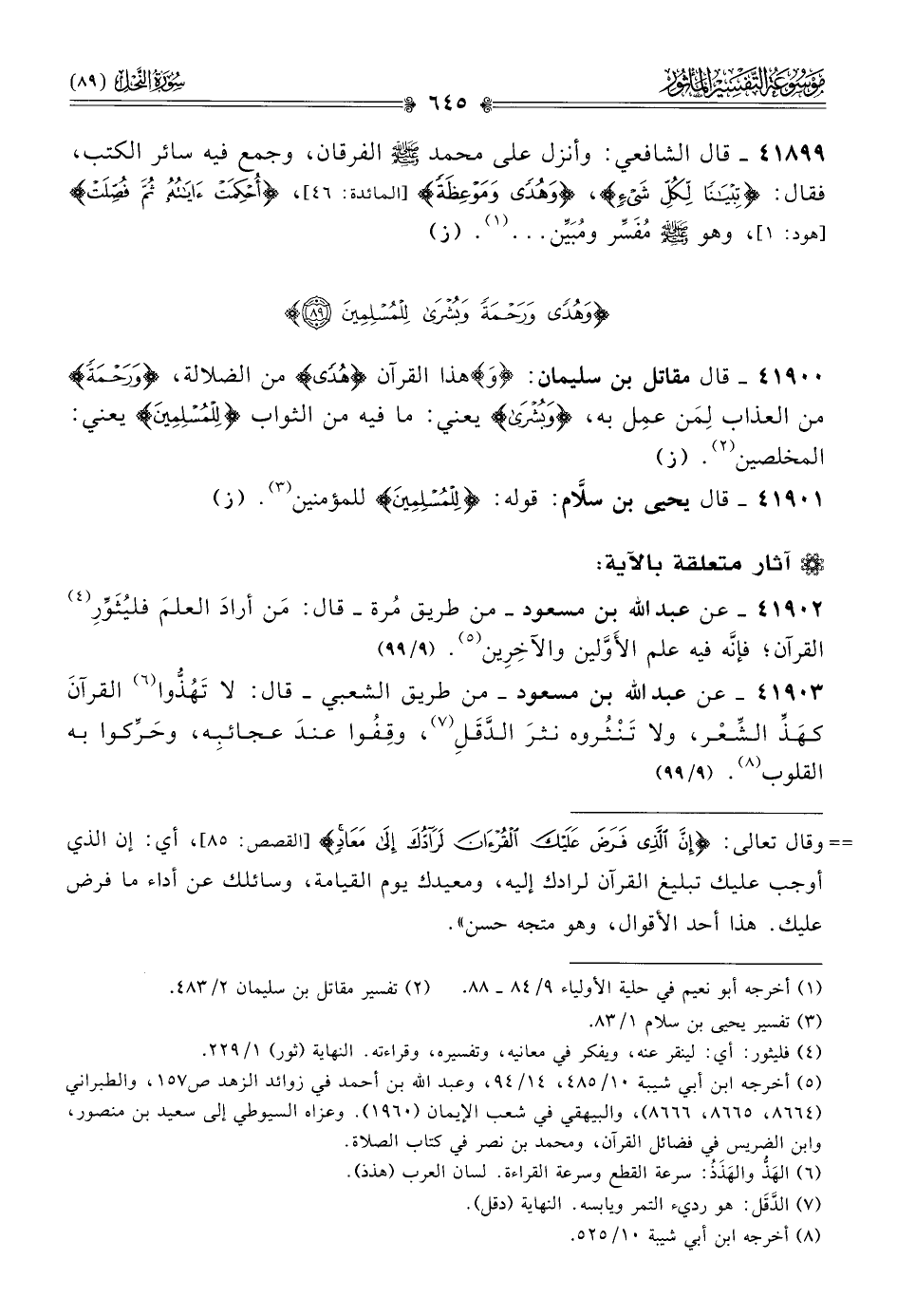{وَهُدًى وَرَحْمَةً وَبُشْرَى لِلْمُسْلِمِينَ (٨٩)}