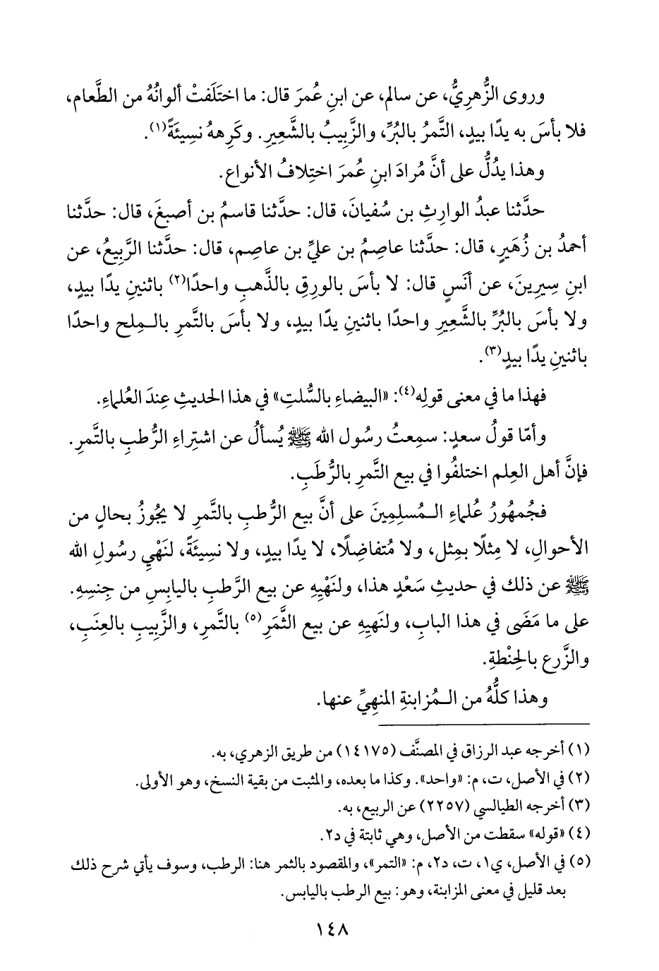 (¬٥) في الأصل، ي ١، ت، د ٢، م: "التمر"، والمقصود بالثمر هنا: الرطب، وسوف يأتي شرح ذلك بعد قليل في معنى المزابنة، وهو: بيع الرطب باليابس.