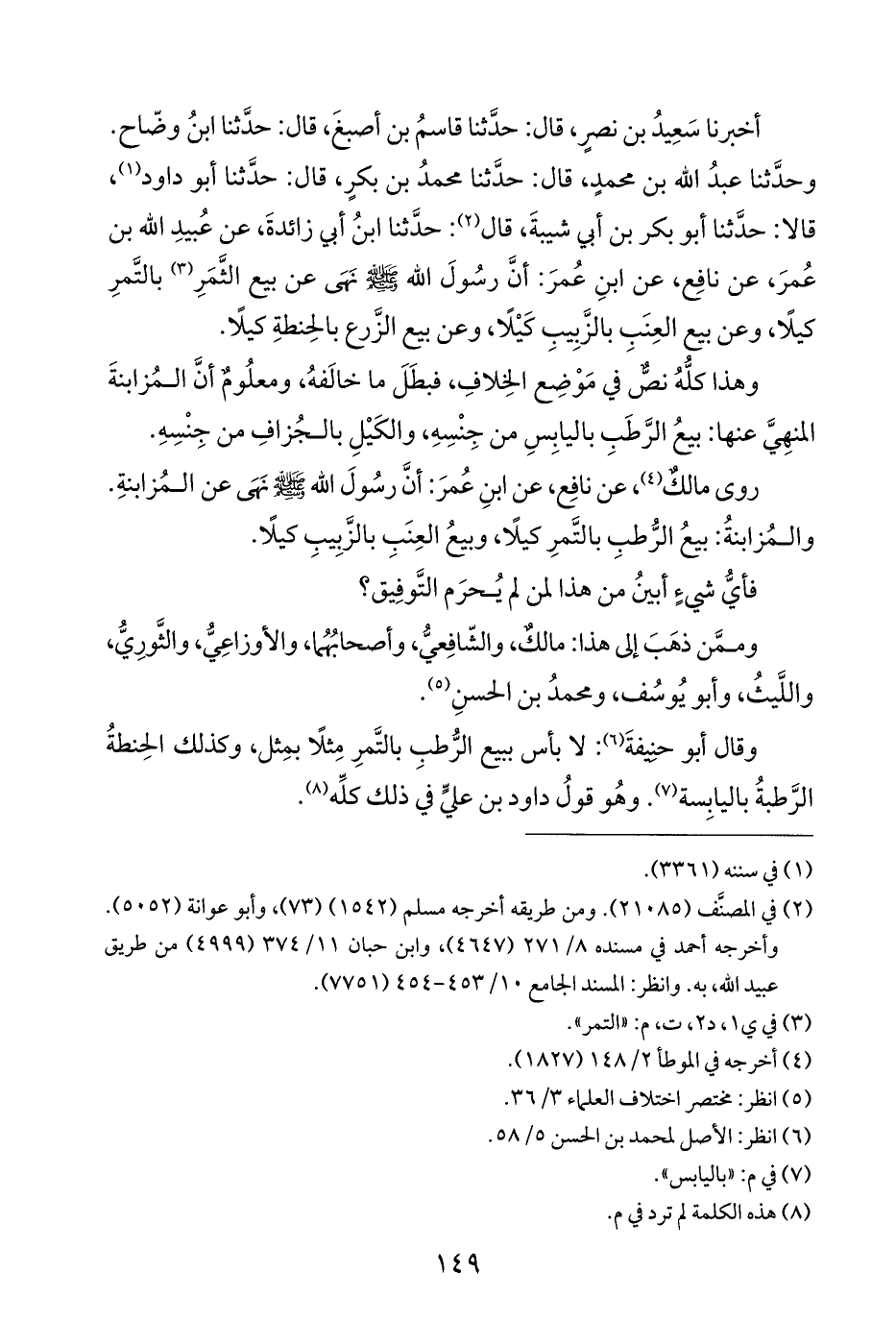 أخبرنا سَعِيدُ بن نصرٍ، قال: حدَّثنا قاسمُ بن أصبغَ، قال: حدَّثنا ابنُ وضّاح. وحدَّثنا عبدُ الله بن محمدٍ، قال: حدَّثنا محمدُ بن بكرٍ، قال: حدَّثنا أبو داود (¬١)، قالا: حدَّثنا أبو بكر بن أبي شيبةَ، قال (¬٢): حدَّثنا ابنُ أبي زائدةَ، عن عُبيدِ الله بن عُمرَ، عن نافِع، عن ابنِ عُمرَ: أنَّ رسُولَ الله - صلى الله عليه وسلم - نَهَى عن بيع الثَّمَرِ (¬٣) بالتَّمرِ كيلًا، وعن بيع العِنَبِ بالزَّبِيبِ كَيْلًا، وعن بيع الزَّرع بالحِنطةِ كيلًا.