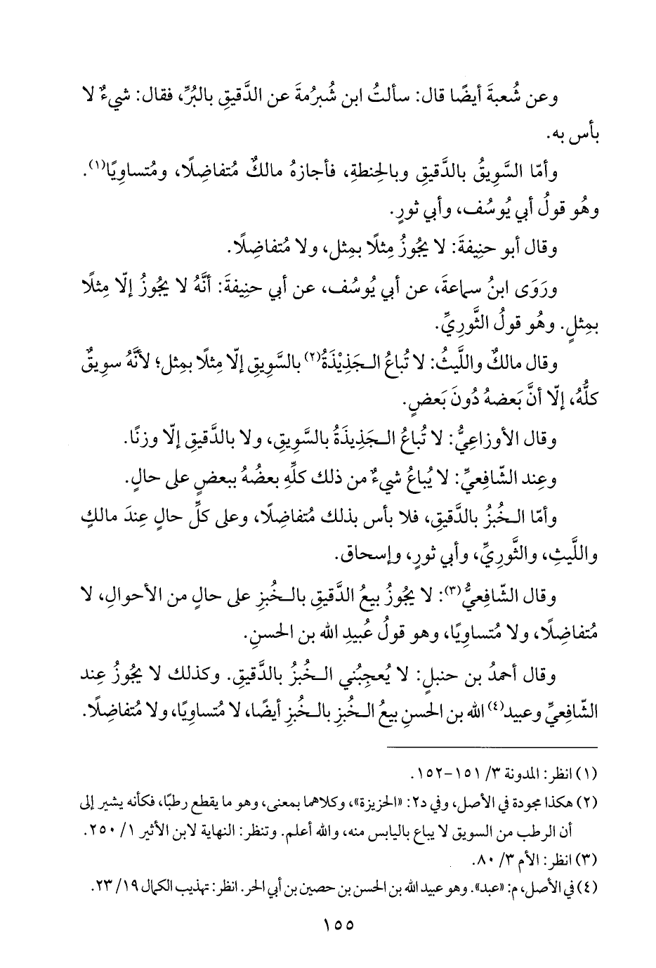 وأمّا الخُبزُ بالدَّقيقِ، فلا بأس بذلك مُتفاضِلًا، وعلى كلِّ حالٍ عِندَ مالكٍ واللَّيثِ، والثَّورِيِّ، وأبي ثورٍ، وإسحاق.