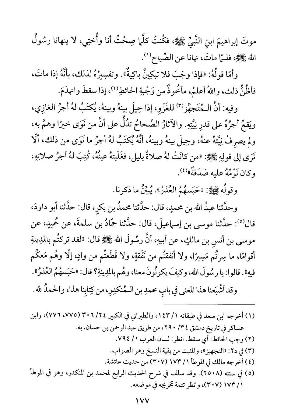 وحدَّثنا عبدُ الله بن محمدٍ، قال: حدَّثنا محمدُ بن بكرٍ، قال: حدَّثنا أبو داودَ، قال (¬٥): حدَّثنا موسى بن إسماعيلَ، قال: حدَّثنا حمّادُ بن سلمةَ، عن حُميدٍ، عن موسى بن أنسِ بن مالكٍ، عن أبيهِ، أنَّ رسُولَ الله - صلى الله عليه وسلم - قال: "لقد تركتُم بالمدِينةِ أقوامًا، ما سِرتُم مَسِيرًا، ولا أنفقتُم من نَفَقةٍ، ولا قَطَعتُم من وادٍ، إلّا وهُم مَعكُم فيهِ". قالوا: يا رسولَ الله، وكيفَ يكونُونَ معنا، وهُم بالمدِينةِ؟ قال: "حَبَسهُمُ العُذرُ".