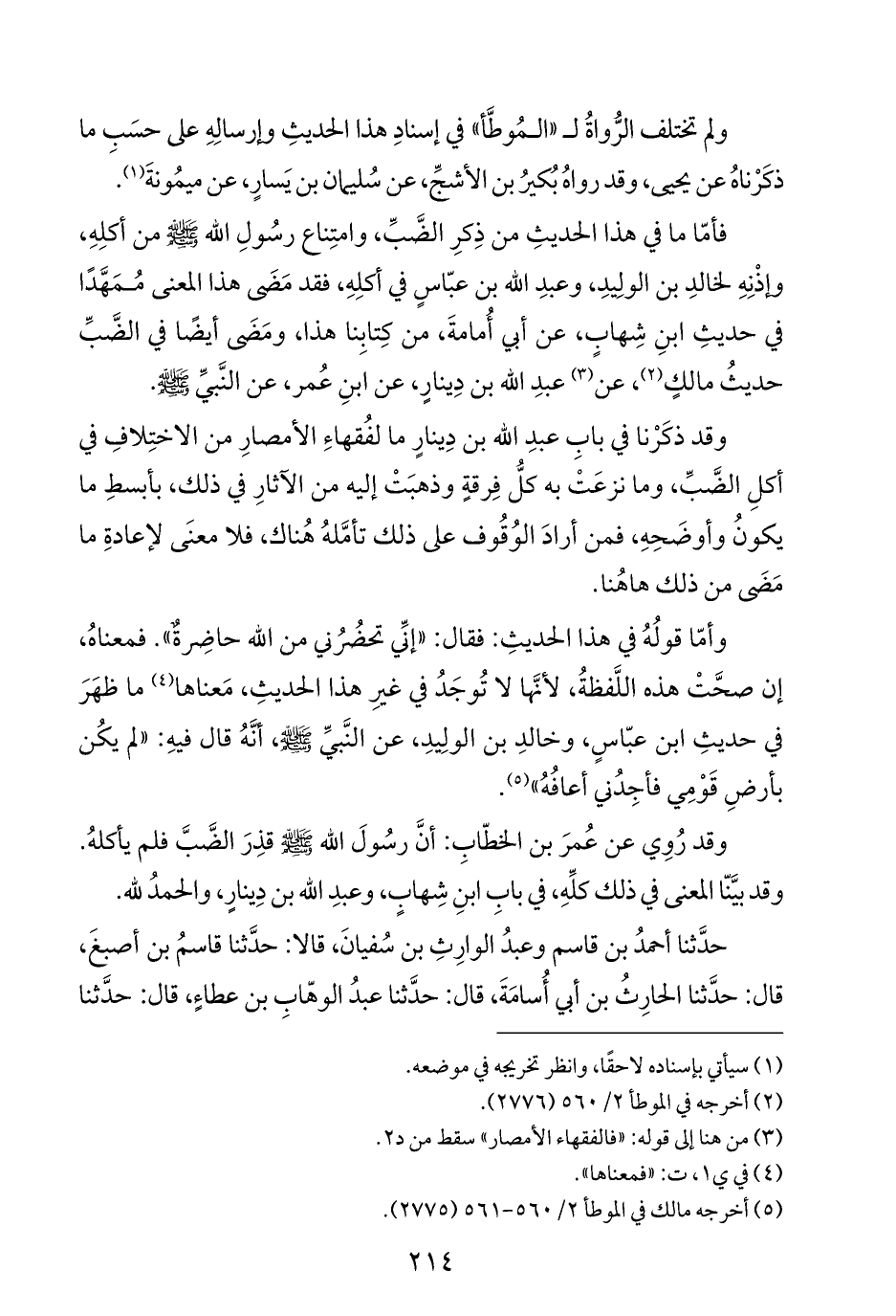وقد ذكَرْنا في بابِ عبدِ الله بن دِينارٍ ما لفُقهاءِ الأمصارِ من الاختِلافِ في أكلِ الضَّبِّ، وما نزعَتْ به كلُّ فِرقةٍ وذهبَتْ إليه من الآثارِ في ذلك، بأبسطِ ما يكونُ وأوضَحِهِ، فمن أرادَ الوُقُوف على ذلك تأمَّلهُ هُناك، فلا معنَى لإعادةِ ما مَضَى من ذلك هاهُنا.