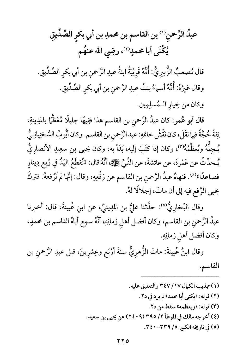 عبدُ الرَّحمنِ (¬١) بن القاسم بن محمدِ بن أبي بكرٍ الصِّدِّيقِ يُكْنَى أبا محمدٍ (¬٢)، رضِي الله عنهُم