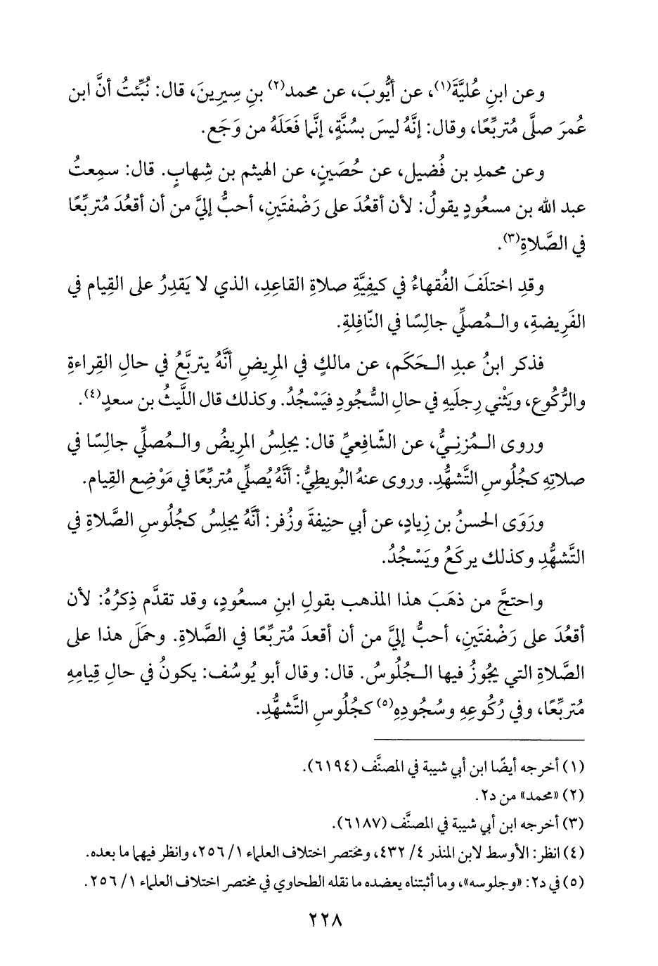 وعن ابنِ عُليَّةَ (¬١)، عن أيُّوبَ، عن محمد (¬٢) بنِ سِيرِينَ، قال: نُبِّئتُ أنَّ ابن عُمرَ صلَّى مُتربِّعًا، وقال: إنَّهُ ليسَ بسُنَّةٍ، إنَّما فَعَلَهُ من وَجَع.