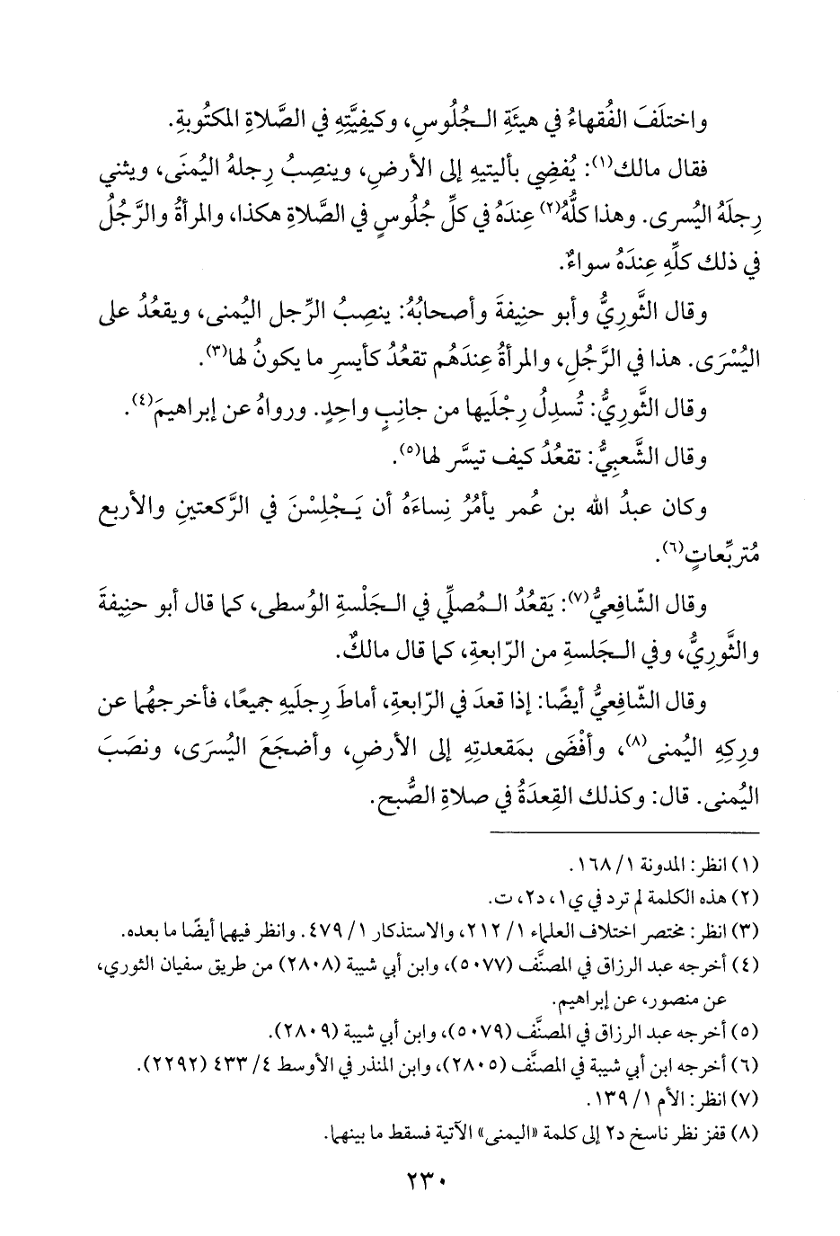 وقال الثَّورِيُّ وأبو حنِيفةَ وأصحابُهُ: ينصِبُ الرِّجل اليُمنى، ويقعُدُ على اليُسْرَى. هذا في الرَّجُلِ، والمرأةُ عِندَهُم تقعُدُ كأيسرِ ما يكونُ لها (¬٣).