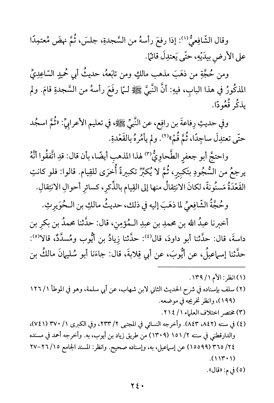 وفي حديثِ رِفاعةَ بن رافِع، عن النَّبيِّ - صلى الله عليه وسلم -، في تعليم الأعرابِيِّ: "ثُمَّ اسجُد حتَّى تعتدِلَ ساجِدًا، ثُمَّ قُمْ" (¬٢). ولم يأمُرهُ بالقَعْدةِ.