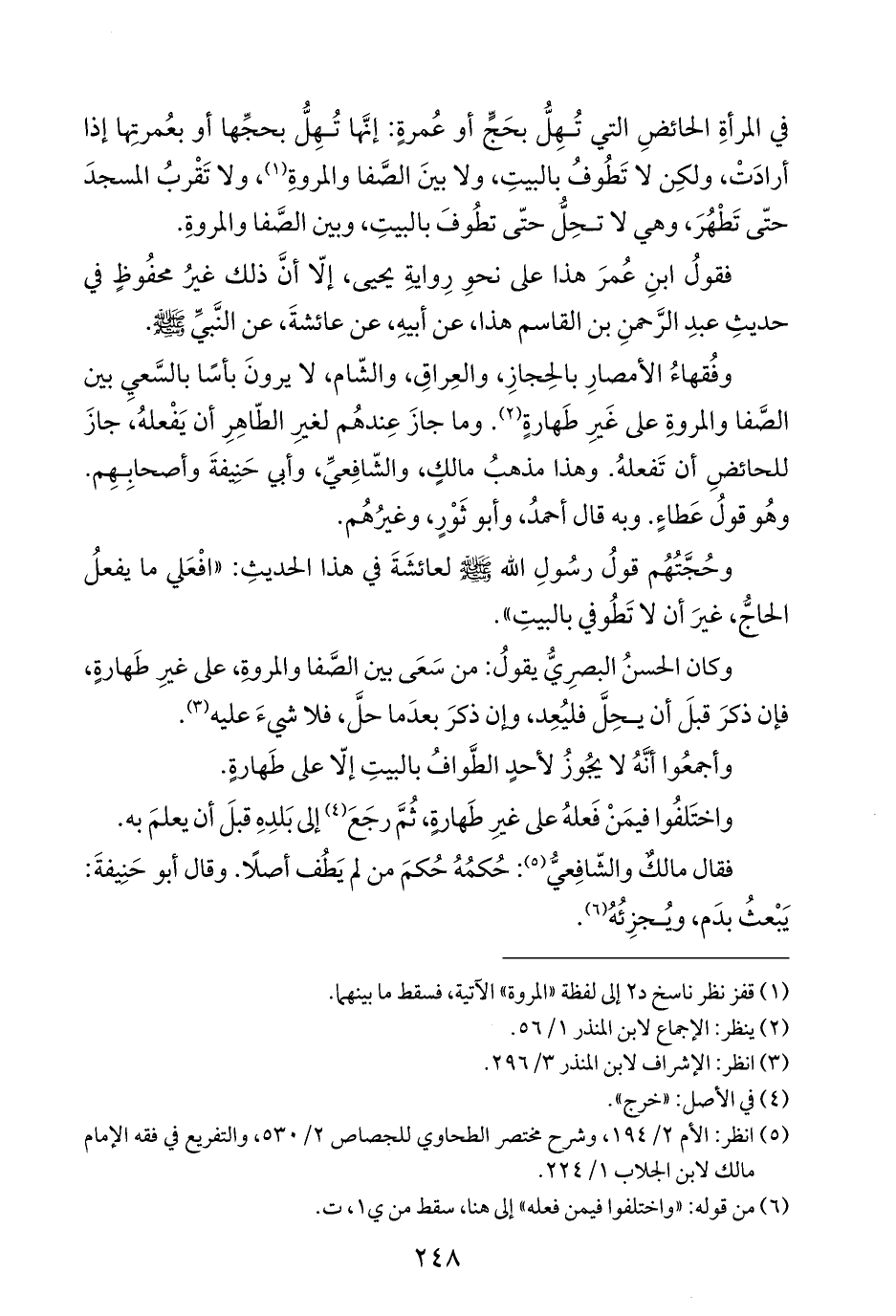 وفُقهاءُ الأمصارِ بالحِجازِ، والعِراقِ، والشّام، لا يرونَ بأسًا بالسَّعيِ بين الصَّفا والمروةِ على غَيرِ طَهارةٍ (¬٢). وما جازَ عِندهُم لغيرِ الطّاهِرِ أن يَفْعلهُ، جازَ للحائضِ أن تَفعلهُ. وهذا مذهبُ مالكٍ، والشّافِعيِّ، وأبي حَنِيفةَ وأصحابِهِم. وهُو قولُ عَطاءٍ. وبه قال أحمدُ، وأبو ثَوْرٍ، وغيرُهُم.