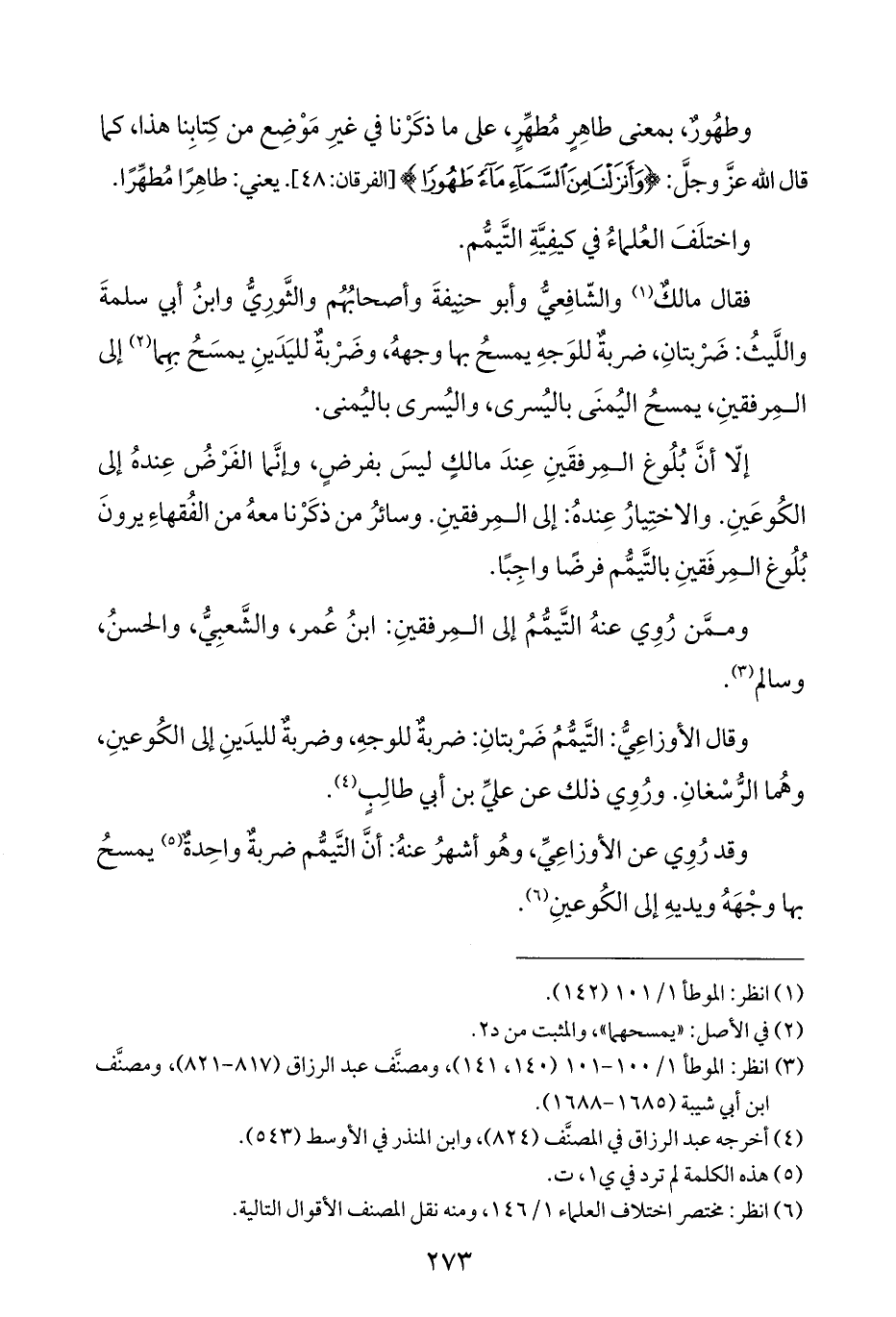(¬٣) انظر: الموطأ ١/ ١٠٠ - ١٠١ (١٤٠، ١٤١)، ومصنَّف عبد الرزاق (٨١٧ - ٨٢١)، ومصنَّف ابن أبي شيبة (١٦٨٥ - ١٦٨٨).
