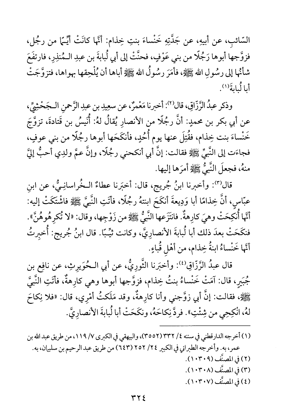 قال (¬٣): وأخبرنا ابنُ جُريج، قال: أخبَرنا عطاءٌ الخُراسانِيُّ، عن ابنِ عبّاسٍ، أنَّ خِذامًا أبا وَدِيعةَ أنكَحَ ابنتهُ رجُلًا، فأَتَتِ النَّبيَّ - صلى الله عليه وسلم - فاشْتَكَتْ إليه: أنَّها أُنكِحَتْ وهيَ كارِهةٌ. فانتَزَعها النَّبيُّ - صلى الله عليه وسلم - من زَوْجِها، وقال: "لا تُكْرِهُوهُنَّ". فنكَحَتْ بعدَ ذلك أبا لُبابةَ الأنصارِيَّ، وكانت ثيِّبًا. قال ابنُ جُريج: أُخبِرتُ أنَّها خَنْساءُ ابنةُ خِذام، من أهْلِ قُباءٍ.