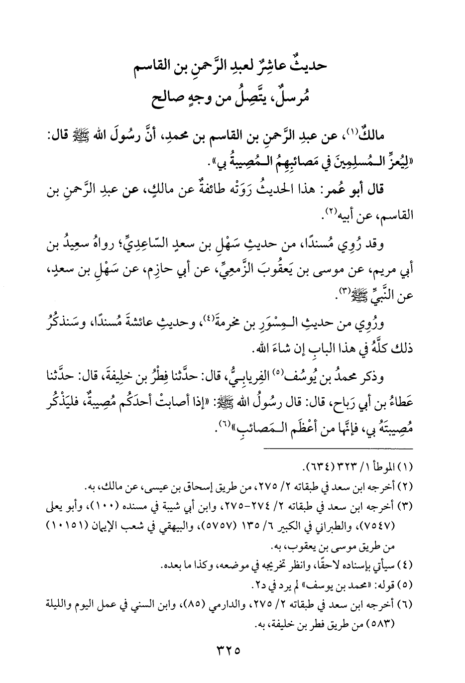 (¬١) الموطأ ١/ ٣٢٣ (٦٣٤).
