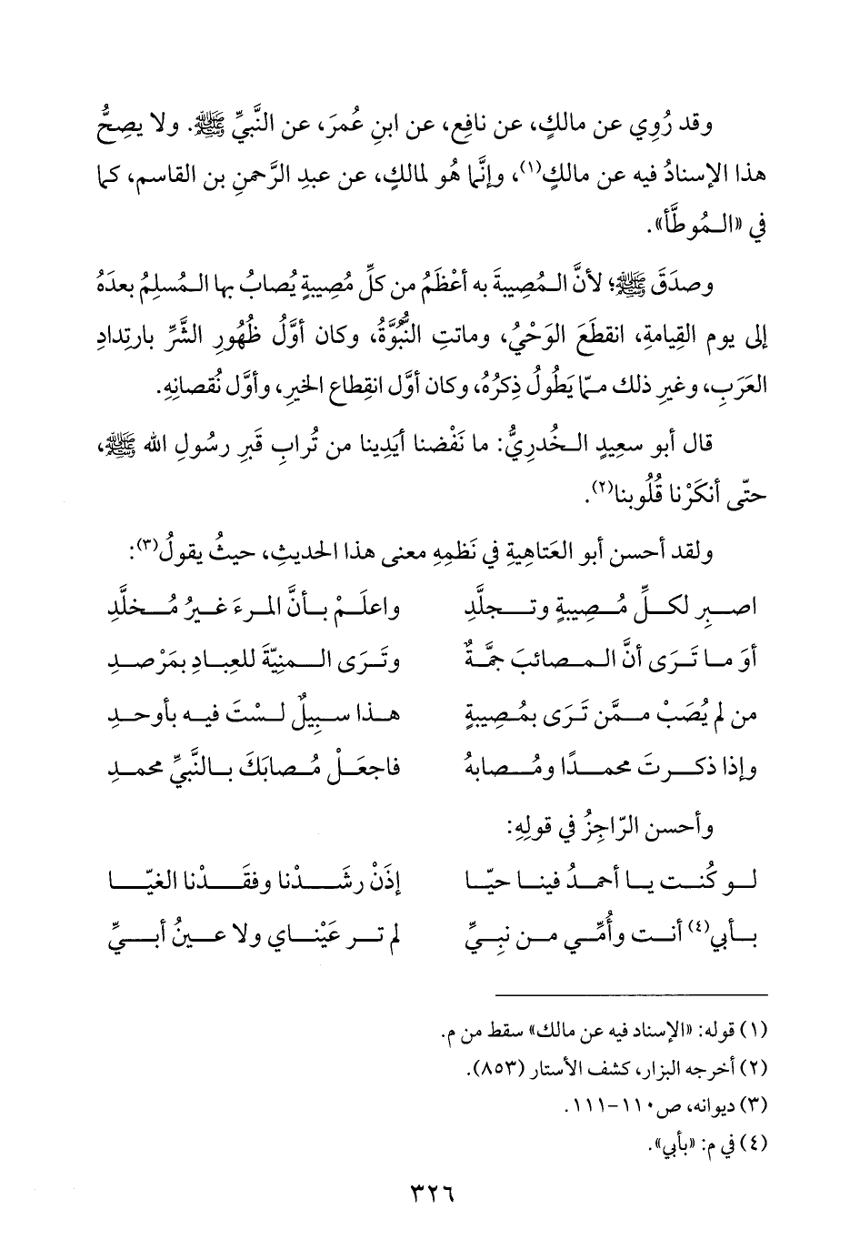 وإذا ذكرتَ محمدًا ومُصابهُ ... فاجعَلْ مُصابَكَ بالنَّبيِّ محمدِ