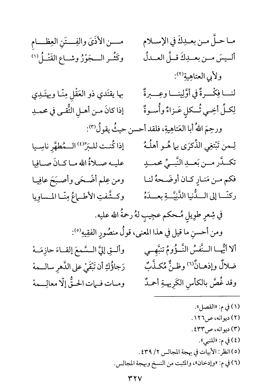 ورحِمَ اللهُ أبا العَتاهِيةِ، فلقد أحسن حيثُ يقولُ (¬٣):