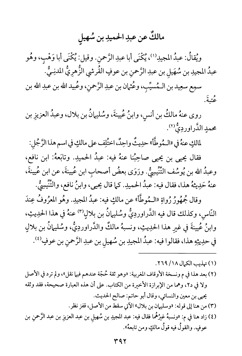 (¬٤) زاد هنا في م: "ونسبهُ غيرُهُما فقال فيه: عبد المجيدِ بن سُهيلِ بن عبد العزيزِ بن عبد الرَّحمنِ بن عوفٍ. والقولُ فيه قولُ مالكٍ ومن تابعهُ".