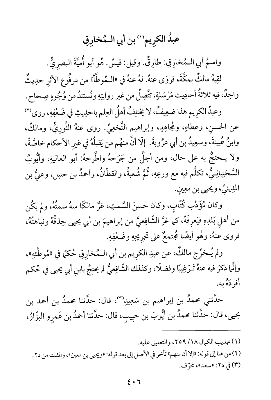 (¬١) تهذيب الكمال ١٨/ ٢٥٩، والتعليق عليه.