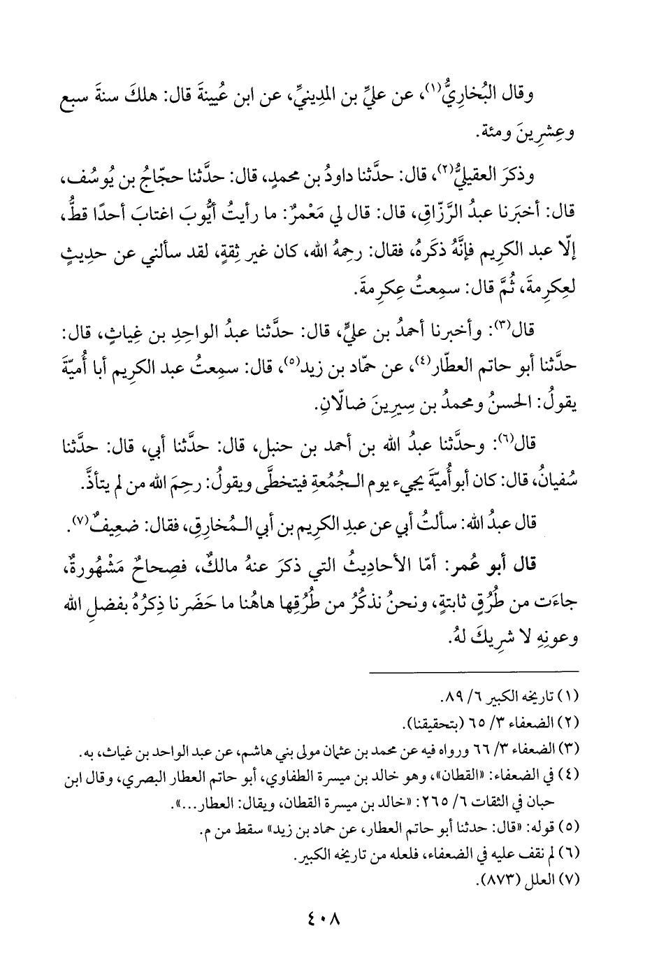 (¬٦) لم نقف عليه في الضعفاء، فلعله من تاريخه الكبير.