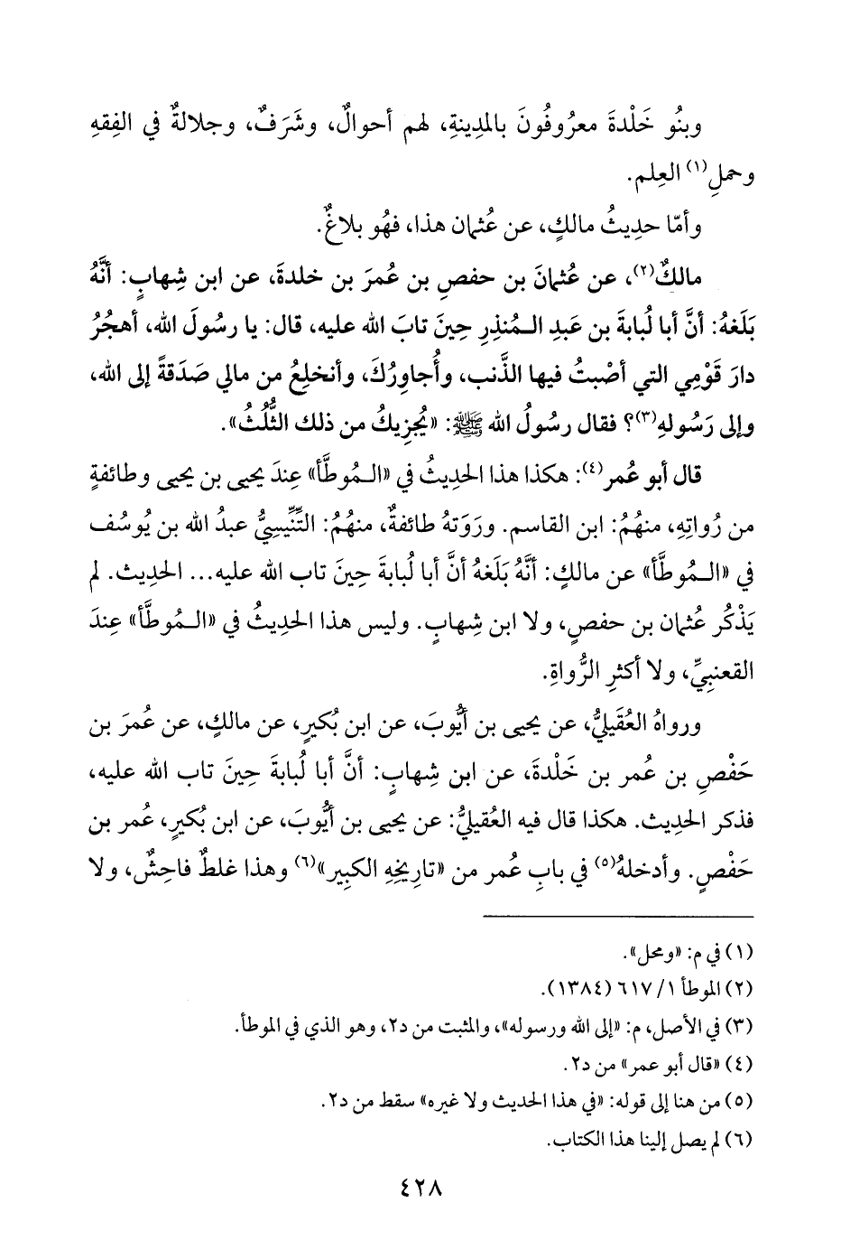 (¬٢) الموطأ ١/ ٦١٧ (١٣٨٤).