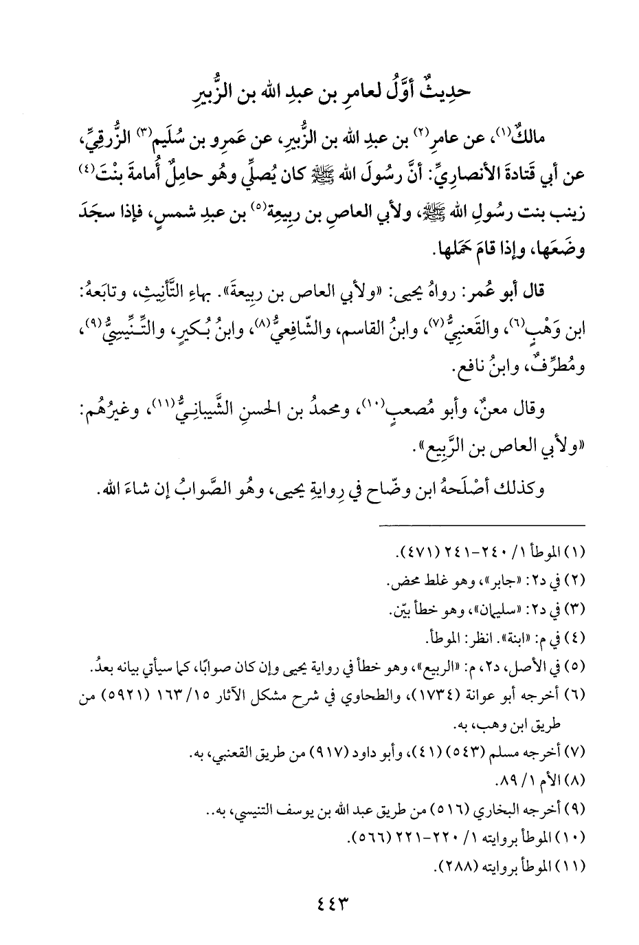 (¬١) الموطأ ١/ ٢٤٠ - ٢٤١ (٤٧١).