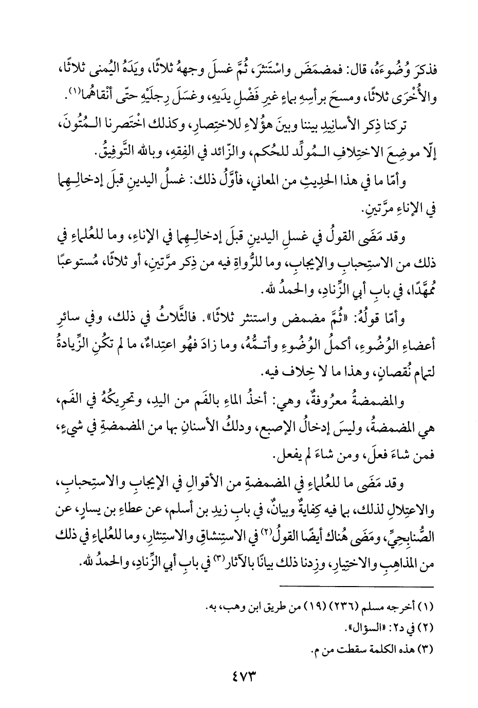 وقد مَضى ما للعُلماءِ في المضمضةِ من الأقوالِ في الإيجابِ والاستِحبابِ، والاعتِلالِ لذلك، بما فيه كِفايةٌ وبيانٌ، في بابِ زيدِ بن أسلم، عن عطاءِ بن يسارٍ، عن الصُّنابِحِيِّ، ومَضَى هُناك أيضًا القولُ (¬٢) في الاستِنشاقِ والاستِنثارِ، وما للعُلماءِ في ذلك من المذاهِبِ والاختِيارِ، وزِدنا ذلك بيانًا بالآثار (¬٣) في بابِ أبي الزِّنادِ، والحمدُ للَّه.