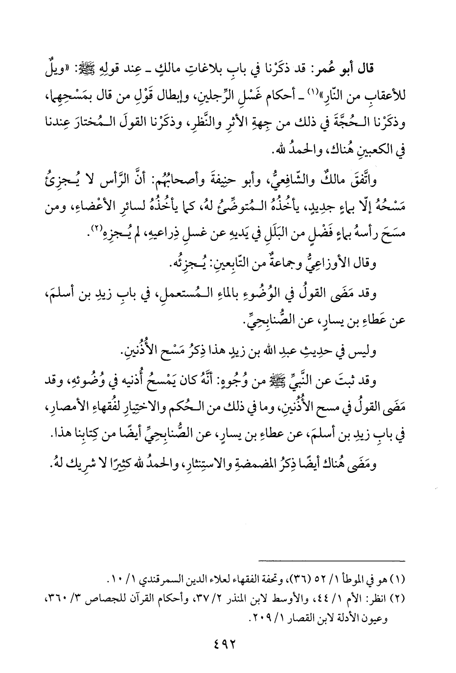 (¬١) هو في الموطأ ١/ ٥٢ (٣٦)، وتحفة الفقهاء لعلاء الدين السمرقندي ١/ ١٠.
