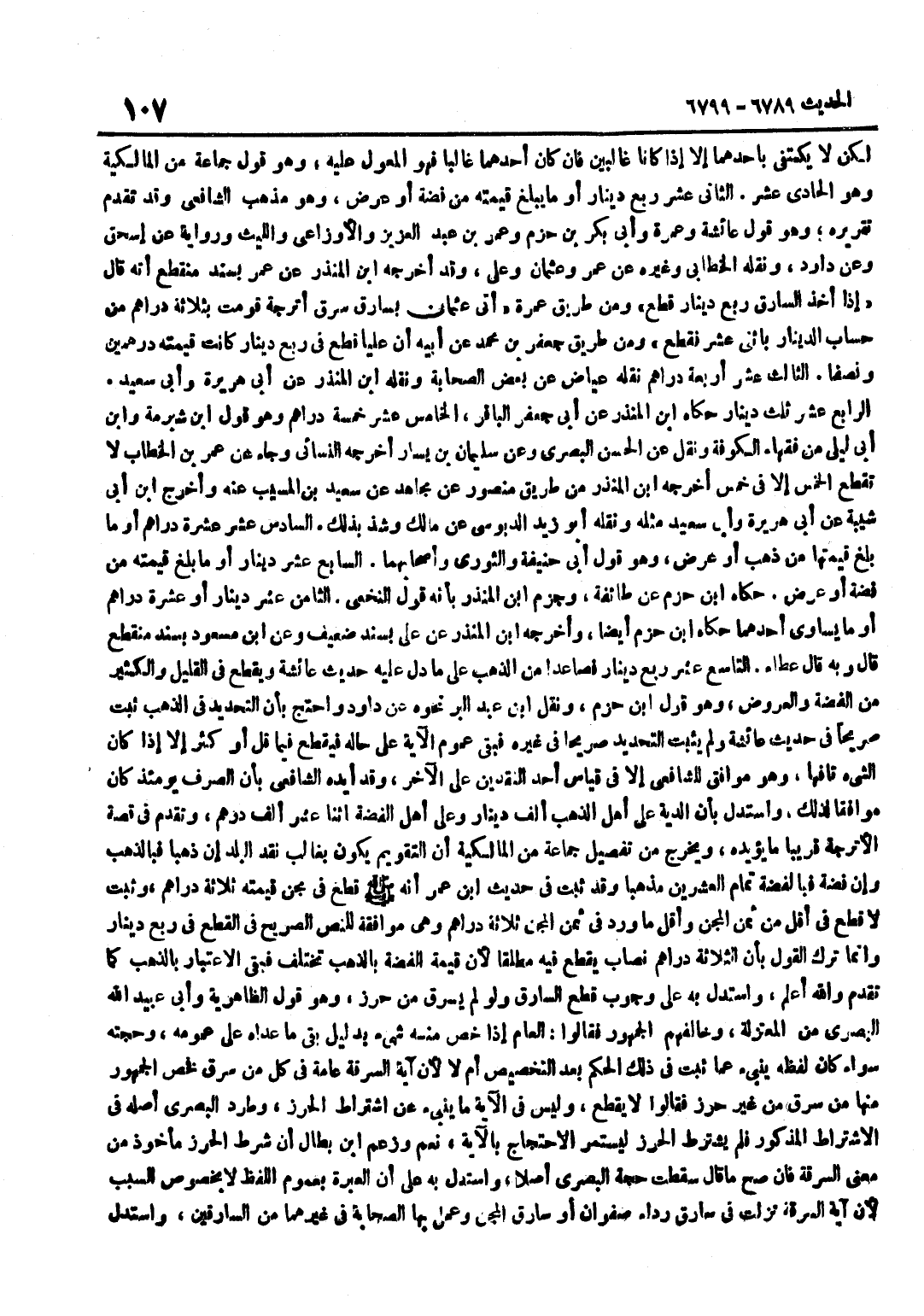 لَكِنْ لَا يُكْتَفَى بِأَحَدِهِمَا إِلَّا إِذَا كَانَا غَالِبَيْنِ فَإِنْ كَانَ أَحَدُهُمَا غَالِبًا فَهُوَ الْمُعَوَّلُ عَلَيْهِ وَهُوَ قَوْلُ جَمَاعَةٍ مِنَ الْمَالِكِيَّةِ وَهُوَ الْحَادِيَ عَشَرَ الثَّانِيَ عَشَرَ رُبْعُ دِينَارٍ أَوْ مَا يَبْلُغُ قِيمَتَهُ مِنْ فِضَّةٍ أَوْ عَرَضٍ وَهُوَ مَذْهَبُ الشَّافِعِيِّ وَقَدْ تَقَدَّمَ تَقْرِيرُهُ وَهُوَ قَوْلُ عَائِشَةَ وَعَمْرَةَ وَأَبِي بَكْرِ بْنِ حَزْمٍ وَعُمَرَ بْنِ عَبْدِ الْعَزِيزِ وَالْأَوْزَاعِيِّ وَاللَّيْثِ وَرِوَايَةٌ عَنْ إِسْحَاقَ وَعَنْ دَاوُدَ وَنَقَلَهُ الْخَطَّابِيُّ وَغَيْرُهُ عَن عمر وَعُثْمَان وَعلي وَقد أخرجه بن الْمُنْذِرِ عَنْ عُمَرَ بِسَنَدٍ مُنْقَطِعٍ أَنَّهُ قَالَ إِذَا أَخَذَ السَّارِقُ رُبْعَ دِينَارٍ قُطِعَ وَمِنْ طَرِيقِ عَمْرَةَ أُتِيَ عُثْمَانُ بِسَارِقٍ سَرَقَ أُتْرُجَّةً قُوِّمَتْ بِثَلَاثَةِ دَرَاهِمَ مِنْ حِسَابِ الدِّينَارِ بِاثْنَيْ عَشَرَ فَقُطِعَ وَمِنْ طَرِيقِ جَعْفَرِ بْنِ مُحَمَّدٍ عَنْ أَبِيهِ أَنَّ عَلِيًّا قَطَعَ فِي رُبْعِ دِينَارٍ كَانَتْ قِيمَتُهُ دِرْهَمَيْنِ وَنِصْفًا الثَّالِثَ عَشَرَ أَرْبَعَةُ دَرَاهِمَ نَقَلَهُ عِيَاضٌ عَنْ بَعْضِ الصَّحَابَةِ وَنَقله بن الْمُنْذِرِ عَنْ أَبِي هُرَيْرَةَ وَأَبِي سَعِيدٍ الرَّابِعَ عشر ثلث دِينَار حَكَاهُ بن الْمُنْذِرِ عَنْ أَبِي جَعْفَرٍ الْبَاقِرِ الْخَامِسَ عَشَرَ خَمْسَة دَرَاهِم وَهُوَ قَول بن شبْرمَة وبن أَبِي لَيْلَى مِنْ فُقَهَاءِ الْكُوفَةِ وَنُقِلَ عَنِ الْحَسَنِ الْبَصْرِيِّ وَعَنْ سُلَيْمَانَ بْنِ يَسَارٍ أَخْرَجَهُ النَّسَائِيّ وَجَاء عَنْ عُمَرَ بْنِ الْخَطَّابِ لَا تُقْطَعُ الْخَمْسُ إِلَّا فِي خمس أخرجه بن الْمُنْذِرِ مِنْ طَرِيقِ مَنْصُورٍ عَنْ مُجَاهِدٍ عَنْ سَعِيدِ بْنِ الْمُسَيَّبِ عَنهُ وَأخرج بن أَبِي شَيْبَةَ عَنْ أَبِي هُرَيْرَةَ وَأَبِي سَعِيدٍ مِثْلَهُ وَنَقَلَهُ أَبُو زَيْدٍ الدَّبُوسِيُّ عَنْ مَالِكٍ وَشَذَّ بِذَلِكَ السَّادِسَ عَشَرَ عَشَرَةُ دَرَاهِمَ أَوْ مَا بَلَغَ قِيمَتَهَا مِنْ ذَهَبٍ أَوْ عَرَضٍ وَهُوَ قَوْلُ أَبِي حَنِيفَةَ وَالثَّوْرِيِّ وَأَصْحَابِهِمَا السَّابِعَ عَشَرَ دِينَارٌ أَوْ مَا بَلَغَ قِيمَتَهُ مِنْ فضَّة أَو عرض حَكَاهُ بن حزم عَن طَائِفَة وَجزم بن الْمُنْذِرِ بِأَنَّهُ قَوْلُ النَّخَعِيِّ الثَّامِنَ عَشَرَ دِينَارٌ أَوْ عَشَرَةُ دَرَاهِمَ أَوْ مَا يُسَاوِي أَحَدَهُمَا حَكَاهُ بن حزم أَيْضا وَأخرجه بن الْمُنْذر عَن عَليّ بِسَنَد ضَعِيف وَعَن بن مَسْعُودٍ بِسَنَدٍ مُنْقَطِعٍ قَالَ وَبِهِ قَالَ عَطَاءٌ التَّاسِعَ عَشَرَ رُبْعُ دِينَارٍ فَصَاعِدًا مِنَ الذَّهَبِ عَلَى مَا دَلَّ عَلَيْهِ حَدِيثُ عَائِشَةَ وَيُقْطَعُ فِي الْقَلِيلِ وَالْكَثِيرِ مِنَ الْفِضَّةِ وَالْعُرُوضِ وَهُوَ قَول بن حزم وَنقل بن عَبْدِ الْبَرِّ نَحْوَهُ عَنْ دَاوُدَ وَاحْتَجَّ بِأَنَّ التَّحْدِيدَ فِي الذَّهَبِ ثَبَتَ صَرِيحًا فِي حَدِيثِ عَائِشَةَ وَلَمْ يَثْبُتِ التَّحْدِيدُ صَرِيحًا فِي غَيْرِهِ فَبَقِيَ عُمُومُ الْآيَةِ عَلَى حَالِهِ فَيُقْطَعُ فِيمَا قَلَّ أَوْ كَثُرَ إِلَّا إِذَا كَانَ الشَّيْءُ تَافِهًا وَهُوَ مُوَافِقٌ لِلشَّافِعِيِّ إِلَّا فِي قِيَاسِ أَحَدِ النَّقْدَيْنِ عَلَى الْآخَرِ وَقَدْ أَيَّدَهُ الشَّافِعِيُّ بِأَنَّ الصَّرْفَ يَوْمئِذٍ كَانَ مُوَافِقًا لِذَلِكَ وَاسْتَدَلَّ بِأَنَّ الدِّيَةَ عَلَى أَهْلِ الذَّهَبِ أَلْفُ دِينَارٍ وَعَلَى أَهْلِ الْفِضَّةِ اثْنَا عَشَرَ أَلْفَ دِرْهَمٍ وَتَقَدَّمَ فِي قِصَّةِ الْأُتْرُجَّةِ قَرِيبًا مَا يُؤَيِّدُهُ وَيُخَرَّجُ مِنْ تَفْصِيلِ جَمَاعَةٍ مِنَ الْمَالِكِيَّةِ أَنَّ التَّقْوِيمَ يَكُونُ بِغَالِبِ نَقْدِ الْبَلَدِ إِنْ ذَهَبًا ف
