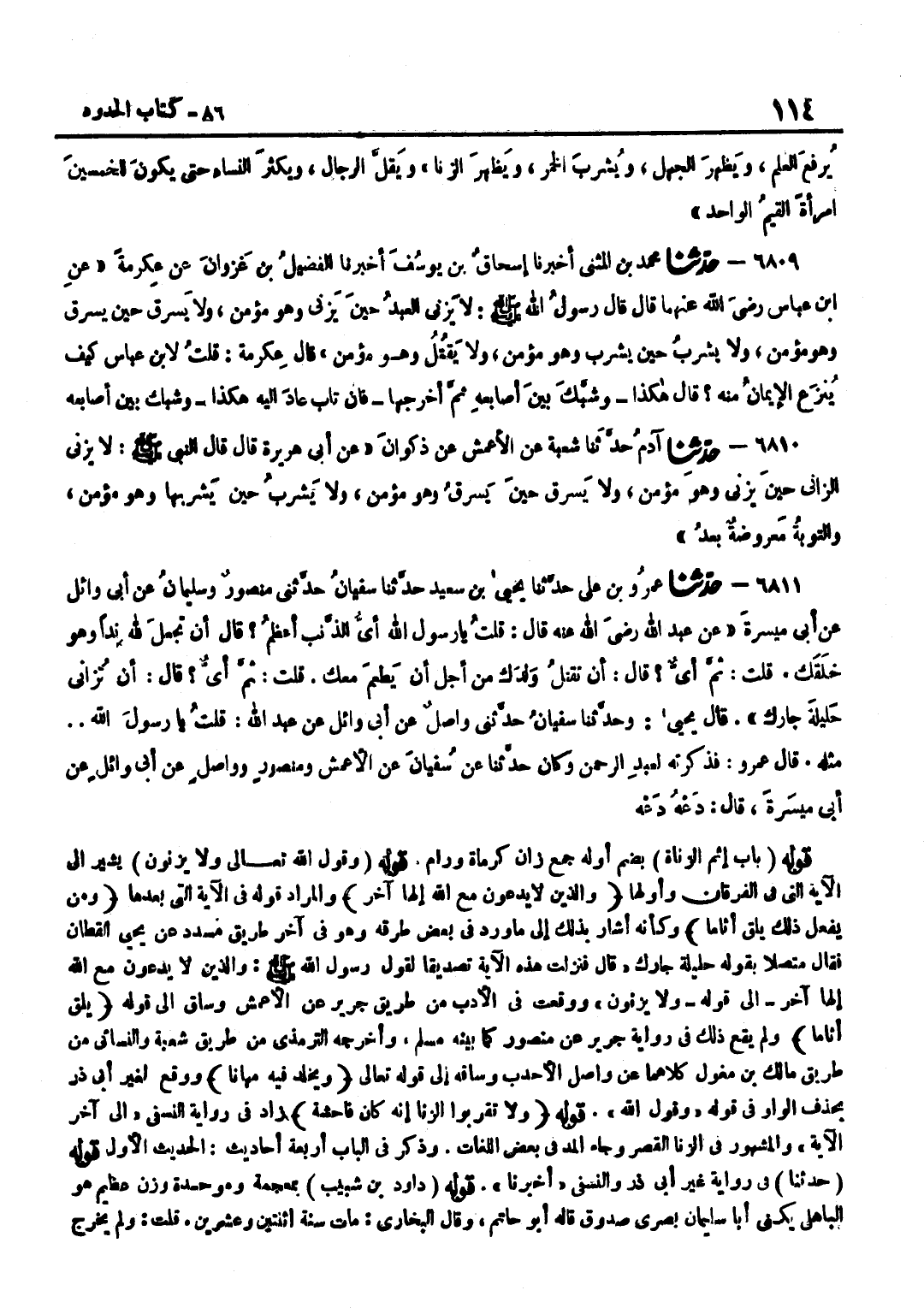 [6808] قَوْلُهُ حَدَّثَنَا فِي رِوَايَةٍ غَيْرِ أَبِي ذَرٍّ وَالنَّسَفِيِّ أَخْبَرَنَا قَوْلُهُ دَاوُدُ بْنُ شَبِيبٍ بِمُعْجَمَةٍ وَمُوَحَّدَةٍ وَزْنَ عَظِيمٍ هُوَ الْبَاهِلِيُّ يُكْنَى أَبَا سُلَيْمَانَ بَصْرِيٌّ صَدُوقٌ قَالَهُ أَبُو حَاتِمٍ وَقَالَ الْبُخَارِيُّ مَاتَ سَنَةَ اثْنَتَيْنِ وَعِشْرِينَ قُلْتُ وَلَمْ يُخَرِّجْ عَنْهُ إِلَّا فِي هَذَا الْحَدِيثِ هُنَا فَقَطْ وَقَدْ تَقَدَّمَ فِي الْعِلْمِ مِنْ طَرِيقِ شُعْبَةَ عَنْ قَتَادَةَ بِزِيَادَةٍ فِي أَوَّلِهِ وَتَقَدَّمَ شَرْحُهُ فِي كِتَابِ الْعِلْمِ وَالْغَرَضُ مِنْهُ قَوْلُهُ فِيهِ وَيَظْهَرُ الزِّنَا أَيْ يَشِيعُ وَيَشْتَهِرُ بِحَيْثُ لَا يُتَكَاتَمُ بِهِ لِكَثْرَةِ مَنْ يَتَعَاطَاهُ وَقَدْ تَقَدَّمَ سَبَبُ قَوْلِ أَنَسٍ لَا يُحَدِّثُكُمُوهُ أَحَدٌ بَعْدِي الْحَدِيثُ الثَّانِي حَدِيث بن عَبَّاس