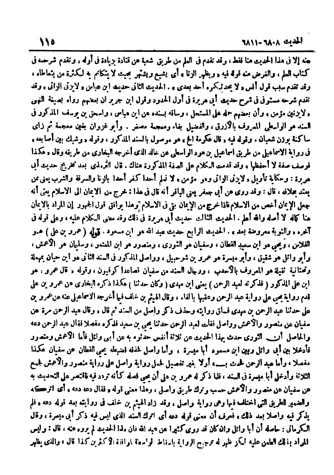 [6810] لَا يَزْنِي الزَّانِي وَهُوَ مُؤْمِنٌ لَا نَعْلَمُ أَحَدًا كَفَّرَ أَحَدًا بِالزِّنَا وَالسَّرِقَةِ وَالشُّرْبِ يَعْنِي مِمَّنْ يُعْتَدُّ بِخِلَافِهِ قَالَ وَقَدْ رُوِيَ عَنْ أَبِي جَعْفَرٍ يَعْنِي الْبَاقِرَ أَنَّهُ قَالَ فِي هَذَا خَرَجَ مِنَ الْإِيمَانِ إِلَى الْإِسْلَامِ يَعْنِي أَنَّهُ جَعَلَ الْإِيمَانَ أَخَصَّ مِنَ الْإِسْلَامِ فَإِذَا خَرَجَ مِنَ الْإِيمَانِ بَقِيَ فِي الْإِسْلَامِ وَهَذَا يُوَافِقُ قَوْلَ الْجُمْهُورِ إِنَّ الْمُرَادَ بِالْإِيمَانِ هُنَا كَمَالُهُ لَا أَصْلُهُ وَاللَّهُ أَعْلَمُ الْحَدِيثُ الثَّالِثُ حَدِيثُ أَبِي هُرَيْرَةَ فِي ذَلِكَ وقَدْ مَضَى الْكَلَامُ عَلَيْهِ وَعَلَى قَوْلِهِ فِي آخِرِهِ وَالتَّوْبَةُ مَعْرُوضَةٌ بَعْدُ الحَدِيث الرَّابِع حَدِيث عبد الله هُوَ بن مَسْعُودٍ