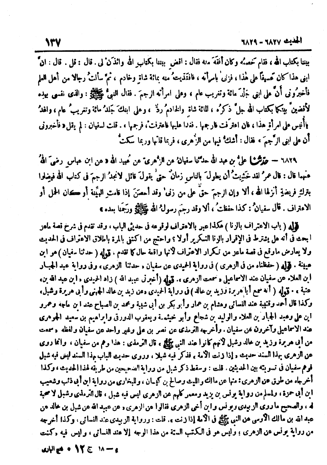 [6827] قَوْله حَدثنَا سُفْيَان هُوَ بن عُيَيْنَةَ قَوْلُهُ حَفِظْنَاهُ مِنْ فِي الزُّهْرِيِّ فِي رِوَايَةِ الْحُمَيْدِيِّ عَنْ سُفْيَانَ حَدَّثَنَا الزُّهْرِيُّ وَفِي رِوَايَةِ عَبْدِ الْجَبَّارِ بْنِ الْعَلَاءِ عَنْ سُفْيَانَ عِنْدَ الْإِسْمَاعِيلِيِّ سَمِعْتُ الزُّهْرِيَّ قَوْلُهُ أَخْبَرَنِي عُبَيْدُ الله زَاد الْحميدِي بن عَبْدِ اللَّهِ بْنِ عُتْبَةَ قَوْلُهُ أَنَّهُ سَمِعَ أَبَا هُرَيْرَةَ وَزَيْدَ بْنَ خَالِدٍ فِي رِوَايَةِ الْحُمَيْدِيِّ عَنْ زَيْدِ بْنِ خَالِدٍ الْجُهَنِيِّ وَأَبِي هُرَيْرَةَ وَشِبْلٍ وَكَذَا قَالَ أَحْمَدُ وَقُتَيْبَةُ عِنْدَ النَّسَائِيِّ وَهِشَامُ بْنُ عَمَّارٍ وَأَبُو بَكْرِ بْنُ أبي شيبَة وَمُحَمّد بن الصَّباح عِنْد بن مَاجَهْ وَعَمْرُو بْنُ عَلِيٍّ وَعَبْدُ الْجَبَّارِ بْنُ الْعَلَاءِ وَالْوَلِيدُ بْنُ شُجَاعٍ وَأَبُو خَيْثَمَةَ وَيَعْقُوبُ الدَّوْرَقِيُّ وَإِبْرَاهِيمُ بْنُ سَعِيدٍ الْجَوْهَرِيُّ عِنْدَ الْإِسْمَاعِيلِيِّ وَآخَرُونَ عَنْ سُفْيَانَ وَأَخْرَجَهُ التِّرْمِذِيُّ عَنْ نَصْرِ بْنِ عَلِيٍّ وَغَيْرُ وَاحِدٍ عَنْ سُفْيَانَ وَلَفْظُهُ سَمِعْتُ مِنْ أَبِي هُرَيْرَةَ وَزَيْدِ بْنِ خَالِدٍ وَشِبْلٍ لِأَنَّهُمْ كَانُوا عِنْدَ النَّبِيُّ صَلَّى اللَّهُ عَلَيْهِ وَسَلَّمَ قَالَ التِّرْمِذِيُّ هَذَا وَهْمٌ مِنْ سُفْيَانَ وَإِنَّمَا رَوَى عَنِ الزُّهْرِيِّ بِهَذَا السَّنَدِ حَدِيثَ إِذَا زَنَتِ الْأَمَةُ فَذَكَرَ فِيهِ شِبْلًا وَرَوَى حَدِيثَ الْبَابِ بِهَذَا السَّنَدِ لَيْسَ فِيهِ شِبْلٌ فَوَهِمَ سُفْيَانُ فِي تَسْوِيَتِهِ بَيْنَ الْحَدِيثَيْنِ قُلْتُ وَسَقَطَ ذِكْرُ شِبْلٍ مِنْ رِوَايَةِ الصَّحِيحَيْنِ مِنْ طَرِيقِهِ لِهَذَا الْحَدِيثِ وَكَذَا أَخْرَجَاهُ مِنْ طُرُقٍ عَنِ الزُّهْرِيِّ مِنْهَا عَنْ مَالِكٍ وَاللَّيْثِ وَصَالح بن كيسَان وللبخاري من رِوَايَة بن أَبِي ذِئْبٍ وَشُعَيْبِ بْنِ أَبِي حَمْزَةَ وَلِمُسْلِمٍ مِنْ رِوَايَةِ يُونُسَ بْنِ يَزِيدَ وَمَعْمَرٍ كُلُّهُمْ عَنِ الزُّهْرِيِّ لَيْسَ فِيهِ شِبْلٌ قَالَ التِّرْمِذِيُّ وَشِبْلٌ لَا صُحْبَةَ لَهُ وَالصَّحِيحُ مَا رَوَى الزبيدِيّ وَيُونُس وبن أَخِي الزُّهْرِيِّ فَقَالُوا عَنِ الزُّهْرِيِّ عَنْ عُبَيْدِ اللَّهِ عَنْ شِبْلِ بْنِ خَالِدٍ عَنْ عَبْدِ اللَّهِ بْنِ مَالِكٍ الْأَوْسِيِّ عَنِ النَّبِيِّ صَلَّى اللَّهُ عَلَيْهِ وَسَلَّمَ فِي الْأَمَةِ إِذَا زَنَتْ قُلْتُ وَرِوَايَةُ الزُّبَيْدِيِّ عِنْدَ النَّسَائِيِّ وَكَذَا أَخْرَجَهُ مِنْ رِوَايَةِ يُونُسَ عَنِ الزُّهْرِيِّ وَلَيْسَ هُوَ فِي الْكُتُبِ السِّتَّةِ مِنْ هَذَا الْوَجْهِ إِلَّا عِنْدَ النَّسَائِيِّ وَلَيْسَ فِيهِ كُنْتُ