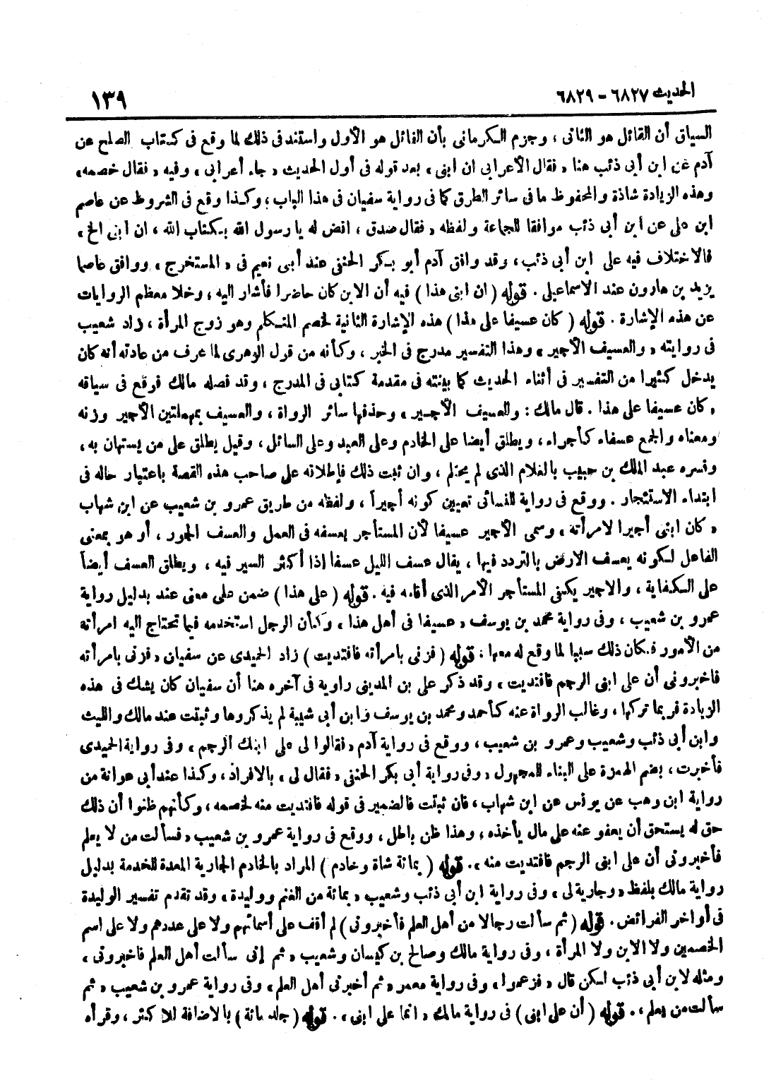 السِّيَاقِ أَنَّ الْقَائِلَ هُوَ الثَّانِي وَجَزَمَ الْكِرْمَانِيُّ بِأَنَّ الْقَائِلَ هُوَ الْأَوَّلُ وَاسْتَنَدَ فِي ذَلِكَ لِمَا وَقَعَ فِي كِتَابِ الصُّلْحِ عَنْ آدَمَ عَن بن أَبِي ذِئْبٍ هُنَا فَقَالَ الْأَعْرَابِيُّ إِنَّ ابْنِي بَعْدَ قَوْلِهِ فِي أَوَّلِ الْحَدِيثِ جَاءَ أَعْرَابِيٌّ وَفِيهِ فَقَالَ خَصْمُهُ وَهَذِهِ الزِّيَادَةُ شَاذَّةٌ وَالْمَحْفُوظُ مَا فِي سَائِرِ الطُّرُقِ كَمَا فِي رِوَايَةِ سُفْيَانَ فِي هَذَا الْبَابِ وَكَذَا وَقَعَ فِي الشُّرُوط عَن عَاصِم بن عَليّ عَن بن أَبِي ذِئْبٍ مُوَافِقًا لِلْجَمَاعَةِ وَلَفْظُهُ فَقَالَ صَدَقَ اقْضِ لَهُ يَا رَسُولَ اللَّهِ بِكِتَابِ اللَّهِ ان ابْني الخ فالاختلاف فِيهِ على بن أَبِي ذِئْبٍ وَقَدْ وَافَقَ آدَمَ أَبُو بَكْرٍ الْحَنَفِيُّ عِنْدَ أَبِي نُعَيْمٍ فِي الْمُسْتَخْرَجِ وَوَافَقَ عَاصِمًا يَزِيدُ بْنُ هَارُونَ عِنْدَ الْإِسْمَاعِيلِيِّ قَوْلُهُ إِنَّ ابْنِي هَذَا فِيهِ أَنَّ الِابْنَ كَانَ حَاضِرًا فَأَشَارَ إِلَيْهِ وَخَلَا مُعْظَمُ الرِّوَايَاتِ عَنْ هَذِهِ الْإِشَارَةِ قَوْلُهُ كَانَ عَسِيفًا عَلَى هَذَا هَذِهِ الْإِشَارَةُ الثَّانِيَةُ لِخَصْمِ الْمُتَكَلِّمِ وَهُوَ زَوْجُ الْمَرْأَةِ زَادَ شُعَيْبٌ فِي رِوَايَتِهِ وَالْعَسِيفُ الْأَجِيرُ وَهَذَا التَّفْسِيرُ مُدْرَجٌ فِي الْخَبَرِ وَكَأَنَّهُ مِنْ قَوْلِ الزُّهْرِيِّ لِمَا عُرِفَ مِنْ عَادَتِهِ أَنَّهُ كَانَ يُدْخِلُ كَثِيرًا مِنَ التَّفْسِيرِ فِي أَثْنَاءِ الْحَدِيثِ كَمَا بَيَّنْتُهُ فِي مُقَدِّمَةِ كِتَابِي فِي الْمُدْرَجِ وَقَدْ فَصَّلَهُ مَالِكٌ فَوَقَعَ فِي سِيَاقِهِ كَانَ عَسِيفًا عَلَى هَذَا قَالَ مَالِكٌ وَالْعَسِيفُ الْأَجِيرُ وَحَذَفَهَا سَائِرُ الرُّوَاةِ وَالْعَسِيفُ بِمُهْمَلَتَيْنِ الْأَجِيرُ وَزْنُهُ وَمَعْنَاهُ وَالْجَمْعُ عُسَفَاءُ كَأُجَرَاءَ وَيُطْلَقُ أَيْضًا عَلَى الْخَادِمِ وَعَلَى الْعَبْدِ وَعَلَى السَّائِلِ وَقِيلَ يُطْلَقُ عَلَى مَنْ يُسْتَهَانُ بِهِ وَفَسَّرَهُ عَبْدُ الْمَلِكِ بْنُ حَبِيبٍ بِالْغُلَامِ الَّذِي لَمْ يَحْتَلِمْ وَإِنْ ثَبَتَ ذَلِكَ فَإِطْلَاقُهُ عَلَى صَاحِبِ هَذِهِ الْقِصَّةِ بِاعْتِبَارِ حَالِهِ فِي ابْتِدَاءِ الِاسْتِئْجَارِ وَوَقَعَ فِي رِوَايَةٍ لِلنَّسَائِيِّ تَعْيِينُ كَوْنِهِ أَجِيرًا وَلَفْظُهُ من طَرِيق عَمْرو بن شُعَيْب عَن بن شِهَابٍ كَانَ ابْنِي أَجِيرًا لِامْرَأَتِهِ وَسُمِّيَ الْأَجِيرُ عَسِيفًا لِأَنَّ الْمُسْتَأْجِرَ يَعْسِفُهُ فِي الْعَمَلِ وَالْعَسْفُ الْجَوْرُ أَوْ هُوَ بِمَعْنَى الْفَاعِلِ لِكَوْنِهِ يَعْسِفُ الْأَرْضَ بِالتَّرَدُّدِ فِيهَا يُقَالُ عَسَفَ اللَّيْلَ عَسْفًا إِذَا أَكْثَرَ السَّيْرَ فِيهِ وَيُطْلَقُ الْعَسْفُ أَيْضًا عَلَى الْكِفَايَةِ وَالْأَجِيرُ يَكْفِي الْمُسْتَأْجِرَ الْأَمْرَ الَّذِي أَقَامَهُ فِيهِ قَوْلُهُ عَلَى هَذَا ضَمَّنَ عَلَى معنى عِنْد بِدَلِيل رِوَايَة عَمْرو بن شُعَيْبٍ وَفِي رِوَايَةِ مُحَمَّدِ بْنِ يُوسُفَ عَسِيفًا فِي أَهْلِ هَذَا وَكَأَنَّ الرَّجُلَ اسْتَخْدَمَهُ فِيمَا تَحْتَاجُ إِلَيْهِ امْرَأَتُهُ مِنَ الْأُمُورِ فَكَانَ ذَلِكَ سَبَبًا لِمَا وَقَعَ لَهُ مَعَهَا قَوْلُهُ فَزَنَى بِامْرَأَتِهِ فَافْتَدَيْتُ زَادَ الْحُمَيْدِيُّ عَنْ سُفْيَانَ فَزَنَى بِامْرَأَتِهِ فَأَخْبَرُونِي أَنَّ عَلَى ابْنِي الرَّجْمَ فَافْتَدَيْتُ وَقَدْ ذَكَرَ عَلِيُّ بْنُ الْمَدِينِيِّ رِوَايَةً فِي آخِرِهِ هُنَا أَنَّ سُفْيَانَ كَانَ يَشُكُّ فِي هَذِهِ الزِّيَادَةِ فَرُبَّمَا تَرَكَهَا وَغَالِبُ الرُّوَاةِ عَنْهُ كأحمد وَمُحَمّد بن يُوسُف وبن أَبِي شَيْبَةَ لَمْ يَذْكُرُوهَا وَثَبَتَتْ عِنْدَ مَالِكٍ وَاللَّيْث وبن أَبِي ذِئْبٍ وَشُعَي