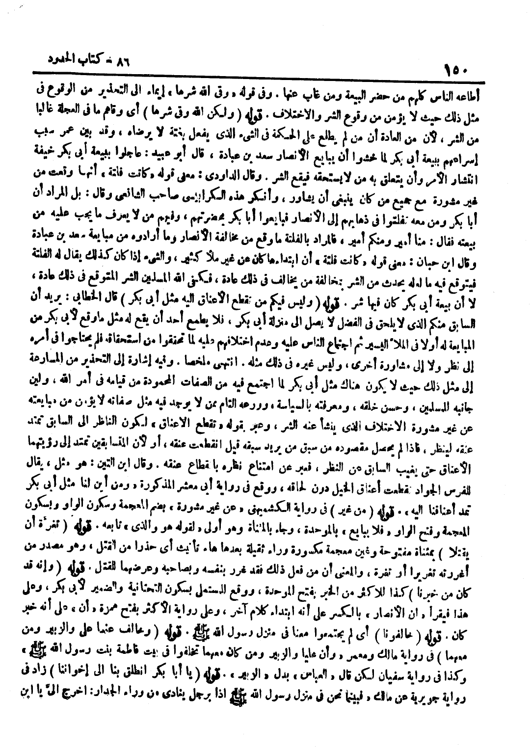 أَطَاعَهُ النَّاسُ كُلُّهُمْ مَنْ حَضَرَ الْبَيْعَةَ وَمَنْ غَابَ عَنْهَا وَفِي قَوْلِهِ وَقَى اللَّهُ شَرَّهَا إِيمَاءٌ إِلَى التَّحْذِيرِ مِنَ الْوُقُوعِ فِي مِثْلِ ذَلِكَ حَيْثُ لَا يُؤْمَنُ مِنْ وُقُوعِ الشَّرِّ وَالِاخْتِلَافِ قَوْلُهُ وَلَكِنَّ اللَّهَ وَقَى شَرَّهَا أَيْ وَقَاهُمْ مَا فِي الْعَجَلَةِ غَالِبًا مِنَ الشَّرِّ لِأَنَّ مِنَ الْعَادَةِ أَنَّ مَنْ لَمْ يَطَّلِعْ عَلَى الْحِكْمَةِ فِي الشَّيْءِ الَّذِي يَفْعَلُ بَغْتَةً لَا يَرْضَاهُ وَقَدْ بَيَّنَ عُمَرُ سَبَبَ إِسْرَاعِهِمْ بِبَيْعَةِ أَبِي بَكْرٍ لِمَا خَشَوْا أَنْ يُبَايِعَ الْأَنْصَار سعد بن عبَادَة قَالَ أبوعبيدة عَاجَلُوا بِبَيْعَةِ أَبِي بَكْرٍ خِيفَةَ انْتِشَارِ الْأَمْرِ وَأَنْ يَتَعَلَّقَ بِهِ مَنْ لَا يَسْتَحِقُّهُ فَيَقَعَ الشَّرُّ وَقَالَ الدَّاوُدِيُّ مَعْنَى قَوْلِهِ كَانَتْ فَلْتَةً أَنَّهَا وَقَعَتْ مِنْ غَيْرِ مَشُورَةٍ مَعَ جَمِيعِ مَنْ كَانَ يَنْبَغِي أَنْ يُشَاوَرَ وَأَنْكَرَ هَذِهِ الْكَرَابِيسِيُّ صَاحِبُ الشَّافِعِيِّ وَقَالَ بَلِ الْمُرَادُ أَنَّ أَبَا بَكْرٍ وَمَنْ مَعَهُ تَفَلَّتُوا فِي ذَهَابِهِمْ إِلَى الْأَنْصَارِ فَبَايَعُوا أَبَا بَكْرٍ بِحَضْرَتِهِمْ وَفِيهِمْ مَنْ لَا يَعْرِفُ مَا يَجِبُ عَلَيْهِ مِنْ بَيْعَتِهِ فَقَالَ مِنَّا أَمِيرٌ وَمِنْكُمْ أَمِيرٌ فَالْمُرَادُ بِالْفَلْتَةِ مَا وَقَعَ مِنْ مُخَالَفَةِ الْأَنْصَارِ وَمَا أَرَادُوهُ مِنْ مُبَايَعَةِ سَعْدِ بْنِ عُبَادَةَ وَقَالَ بن حِبَّانَ مَعْنَى قَوْلِهِ كَانَتْ فَلْتَةً أَنَّ ابْتِدَاءَهَا كَانَ عَنْ غَيْرِ مَلَإٍ كَثِيرٍ وَالشَّيْءُ إِذَا كَانَ كَذَلِكَ يُقَالُ لَهُ الْفَلْتَةُ فَيُتَوَقَّعُ فِيهِ مَا لَعَلَّهُ يَحْدُثُ مِنَ الشَّرِّ بِمُخَالَفَةِ مَنْ يُخَالِفُ فِي ذَلِكَ عَادَةً فَكَفَى اللَّهُ الْمُسْلِمِينَ الشَّرَّ الْمُتَوَقَّعَ فِي ذَلِكَ عَادَةً لَا أَنَّ بَيْعَةَ أَبِي بَكْرٍ كَانَ فِيهَا شَرٌّ قَوْلُهُ وَلَيْسَ فِيكُمْ مَنْ تُقْطَعُ الْأَعْنَاقُ إِلَيْهِ مِثْلُ أَبِي بَكْرٍ قَالَ الْخَطَّابِيُّ يُرِيدُ أَنَّ السَّابِقَ مِنْكُمُ الَّذِي لَا يُلْحَقُ فِي الْفَضْلِ لَا يَصِلُ إِلَى مَنْزِلَةِ أَبِي بَكْرٍ فَلَا يَطْمَعُ أَحَدٌ أَنْ يَقَعَ لَهُ مِثْلُ مَا وَقَعَ لِأَبِي بَكْرٍ مِنَ الْمُبَايَعَةِ لَهُ أَوَّلًا فِي الْمَلَإِ الْيَسِيرِ ثُمَّ اجْتِمَاعِ النَّاسِ عَلَيْهِ وَعَدَمِ اخْتِلَافِهِمْ عَلَيْهِ لِمَا تَحَقَّقُوا مِنِ اسْتِحْقَاقِهِ فَلَمْ يَحْتَاجُوا فِي أَمْرِهِ إِلَى نَظَرٍ وَلَا إِلَى مُشَاوَرَةٍ أُخْرَى وَلَيْسَ غَيْرُهُ فِي ذَلِكَ مِثْلَهُ انْتَهَى مُلَخَّصًا وَفِيهِ إِشَارَةٌ إِلَى التَّحْذِيرِ مِنَ الْمُسَارَعَةِ إِلَى مِثْلِ ذَلِكَ حَيْثُ لَا يَكُونُ هُنَاكَ مِثْلُ أَبِي بَكْرٍ لِمَا اجْتَمَعَ فِيهِ مِنَ الصِّفَاتِ الْمَحْمُودَةِ مِنْ قِيَامِهِ فِي أَمْرِ اللَّهِ وَلِينِ جَانِبِهِ لِلْمُسْلِمِينَ وَحُسْنِ خُلُقِهِ وَمَعْرِفَتِهِ بِالسِّيَاسَةِ وَوَرَعِهِ التَّامِّ مِمَّنْ لَا يُوجَدُ فِيهِ مِثْلُ صِفَاتِهِ لَا يُؤْمَنُ مِنْ مُبَايَعَتِهِ عَنْ غَيْرِ مَشُورَةٍ الِاخْتِلَافُ الَّذِي يَنْشَأُ عَنْهُ الشَّرُّ وَعَبَّرَ بِقَوْلِهِ تُقْطَعُ الْأَعْنَاقُ لِكَوْنِ النَّاظِرِ إِلَى السَّابِقِ تَمْتَدُّ عُنُقُهُ لِيَنْظُرَ فَإِذَا لَمْ يَحْصُلْ مَقْصُودُهُ مِنْ سَبْقِ مَنْ يُرِيدُ سَبْقَهُ قِيلَ انْقَطَعَتْ عُنُقُهُ أَوْ لِأَنَّ الْمُتَسَابِقَيْنِ تَمْتَدُّ إِلَى رُؤْيَتِهِمَا الْأَعْنَاقُ حَتَّى يَغِيبَ السَّابِقُ عَنِ النَّظَرِ فَعَبَّرَ عَنِ امْتِنَاعِ نَظَرِهِ بِانْقِطَاعِ عُنُقِهِ وَقَالَ بن التِّينِ هُوَ مَثَلٌ يُقَالُ لِلْفَرَسِ الْجَوَادِ تَقَطَّعَتْ أَعْنَا