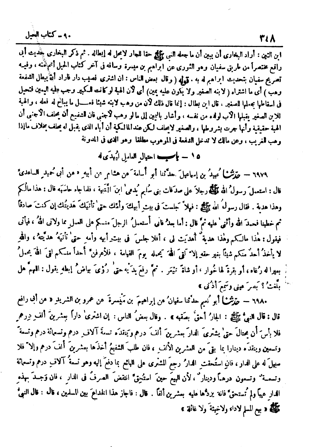 بن التِّينِ أَرَادَ الْبَخُارِيُّ أَنَّ يُبَيِّنَ أَنَّ مَا جَعَلَهُ النَّبِيُّ صَلَّى اللَّهُ عَلَيْهِ وَسَلَّمَ حَقًّا لِلْجَارِ لَا يَحِلُّ لَهُ إِبْطَالُهُ ثُمَّ ذَكَرَ الْبُخَارِيُّ حَدِيثَ أَبِي رَافِعٍ مُخْتَصَرًا مِنْ طَرِيقِ سُفْيَانَ وَهُوَ الثَّوْرِيُّ عَنْ إِبْرَاهِيمَ بْنِ مَيْسَرَةَ وَسَاقه فِي آخر كتاب الْحِيَل أتم مِنْهُ وَفِيهِ تَصْرِيحُ سُفْيَانَ بِتَحْدِيثِ إِبْرَاهِيمَ لَهُ بِهِ