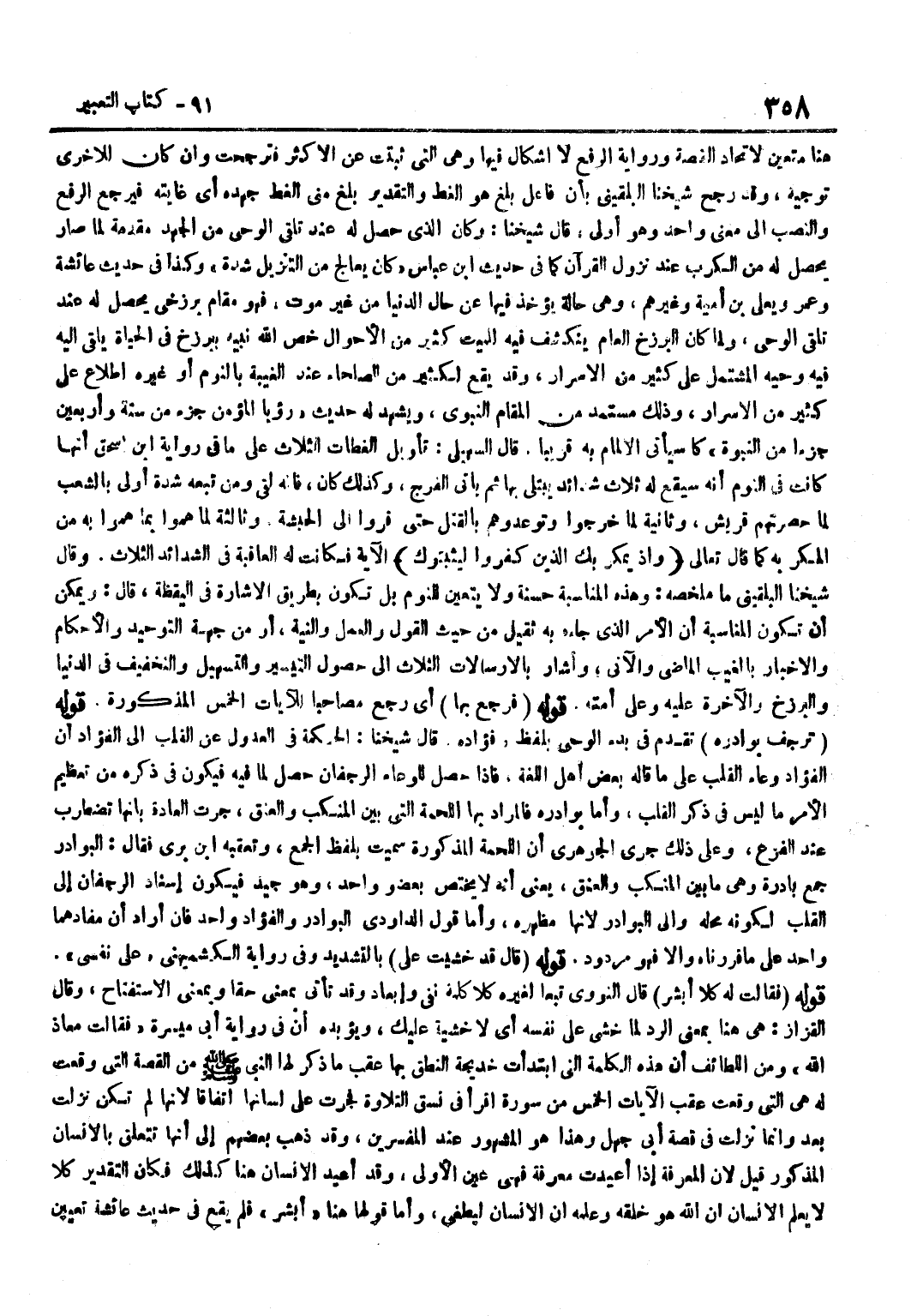 هُنَا مُتَعَيَّنٌ لِاتِّحَادِ الْقِصَّةِ وَرِوَايَةُ الرَّفْعِ لَا إِشْكَالَ فِيهَا وَهِيَ الَّتِي ثَبَتَتْ عَنِ الْأَكْثَرِ فَتَرَجَّحَتْ وَإِنْ كَانَ لِلْأُخْرَى تَوْجِيهٌ وَقَدْ رَجَّحَ شَيْخُنَا الْبُلْقِينِيُّ بِأَنَّ فَاعِلَ بَلَغَ هُوَ الْغَطُّ وَالتَّقْدِيرُ بَلَغَ مِنِّي الْغَطُّ جَهْدَهُ أَيْ غَايَتَهُ فَيَرْجِعُ الرَّفْعُ وَالنَّصْبُ إِلَى مَعْنًى وَاحِدٍ وَهُوَ أَوْلَى قَالَ شَيْخُنَا وَكَانَ الَّذِي حَصَلَ لَهُ عِنْدَ تَلَقِّي الْوَحْيِ مِنَ الْجَهْدِ مُقَدِّمَةً لِمَا صَارَ يَحْصُلُ لَهُ مِنَ الْكَرْبِ عِنْدَ نُزُولِ الْقُرْآن كَمَا فِي حَدِيث بن عَبَّاسٍ كَانَ يُعَالِجُ مِنَ التَّنْزِيلِ شِدَّةً وَكَذَا فِي حَدِيثِ عَائِشَةَ وَعُمَرَ وَيَعْلَى بْنِ أُمَيَّةَ وَغَيْرِهِمْ وَهِيَ حَالَةٌ يُؤْخَذُ فِيهَا عَنْ حَالِ الدُّنْيَا مِنْ غَيْرِ مَوْتٍ فَهُوَ مَقَامٌ بَرْزَخِيٌّ يَحْصُلُ لَهُ عِنْدَ تَلَقِّي الْوَحْيِ وَلَمَّا كَانَ الْبَرْزَخُ الْعَامُّ يَنْكَشِفُ فِيهِ لِلْمَيِّتِ كَثِيرٌ مِنَ الْأَحْوَالِ خَصَّ اللَّهُ نَبِيَّهُ بِبَرْزَخٍ فِي الْحَيَاةِ يُلْقِي إِلَيْهِ فِيهِ وَحْيَهُ الْمُشْتَمِلَ عَلَى كَثِيرٍ مِنَ الْأَسْرَارِ وَقَدْ يَقَعُ لِكَثِيرٍ مِنَ الصُّلَحَاءِ عِنْدَ الْغَيْبَةِ بِالنَّوْمِ أَوْ غَيْرِهِ اطِّلَاعٌ عَلَى كَثِيرٍ مِنَ الْأَسْرَارِ وَذَلِكَ مُسْتَمَدٌّ مِنَ الْمَقَامِ النَّبَوِيِّ وَيَشْهَدُ لَهُ حَدِيثُ رُؤْيَا الْمُؤْمِنِ جُزْءٌ مِنْ سِتَّةٍ وَأَرْبَعِينَ جُزْءًا مِنَ النُّبُوَّةِ كَمَا سَيَأْتِي الْإِلْمَامُ بِهِ قَرِيبًا قَالَ السُّهَيْلِيُّ تَأْوِيلُ الغطات الثَّلَاث على مَا فِي رِوَايَة بن إِسْحَاقَ أَنَّهَا كَانَتْ فِي النَّوْمِ أَنَّهُ سَيَقَعُ لَهُ ثَلَاثُ شَدَائِدَ يُبْتَلَى بِهَا ثُمَّ يَأْتِي الْفَرَجُ وَكَذَلِكَ كَانَ فَإِنَّهُ لَقِيَ وَمَنْ تَبِعَهُ شِدَّةً أُولَى بِالشِّعْبِ لَمَّا حَصَرَتْهُمْ قُرَيْشٌ وَثَانِيَةً لَمَّا خَرَجُوا وَتَوَعَّدُوهُمْ بِالْقَتْلِ حَتَّى فَرُّوا إِلَى الْحَبَشَةِ وَثَالِثَةً لَمَّا هَمُّوا بِمَا هَمُّوا بِهِ مِنَ الْمَكْرِ بِهِ كَمَا قَالَ تَعَالَى وَإِذْ يمكر بك الَّذين كفرُوا ليثبتوك الْآيَةَ فَكَانَتْ لَهُ الْعَاقِبَةُ فِي الشَّدَائِدِ الثَّلَاثِ وَقَالَ شَيْخُنَا الْبُلْقِينِيُّ مَا مُلَخَّصُهُ وَهَذِهِ الْمُنَاسَبَةُ حَسَنَةٌ وَلَا يَتَعَيَّنُ لِلنَّوْمِ بَلْ تَكُونُ بِطَرِيقِ الْإِشَارَةِ فِي الْيَقَظَةِ قَالَ وَيُمْكِنُ أَنْ تَكُونَ الْمُنَاسَبَةُ أَنَّ الْأَمْرَ الَّذِي جَاءَهُ بِهِ ثَقِيلٌ مِنْ حَيْثُ الْقَوْلُ وَالْعَمَلُ وَالنِّيَّةُ أَوْ مِنْ جِهَة التَّوْحِيد وَالْأَحْكَام والاخبار بِالْغَيْبِ الْمَاضِي والآني وَأَشَارَ بِالْإِرْسَالَاتِ الثَّلَاثِ إِلَى حُصُولِ التَّيْسِيرِ وَالتَّسْهِيلِ وَالتَّخْفِيفِ فِي الدُّنْيَا وَالْبَرْزَخِ وَالْآخِرَةِ عَلَيْهِ وَعَلَى أُمَّتِهِ قَوْلُهُ فَرَجَعَ بِهَا أَيْ رَجَعَ مُصَاحِبًا لِلْآيَاتِ الْخَمْسِ الْمَذْكُورَةِ قَوْلُهُ تَرْجُفُ بَوَادِرُهُ تَقَدَّمَ فِي بَدْءِ الْوَحْيِ بِلَفْظِ فُؤَادُهُ قَالَ شَيْخُنَا الْحِكْمَةُ فِي الْعُدُولِ عَنِ الْقَلْبِ إِلَى الْفُؤَادِ أَنَّ الْفُؤَادَ وِعَاءُ الْقَلْبِ عَلَى مَا قَالَهُ بَعْضُ أَهْلِ اللُّغَةِ فَإِذَا حَصَلَ لِلْوِعَاءِ الرَّجَفَانُ حَصَلَ لِمَا فِيهِ فَيَكُونُ فِي ذِكْرِهِ مِنْ تَعْظِيمِ الْأَمْرِ مَا لَيْسَ فِي ذِكْرِ الْقَلْبِ وَأَمَّا بَوَادِرُهُ فَالْمُرَادُ بِهَا اللَّحْمَةُ الَّتِي بَيْنَ الْمَنْكِبِ وَالْعُنُقِ جَرَتِ الْعَادَةُ بِأَنَّهَا تَضْطَرِبُ عِنْدَ الْفَزَعِ وَعَلَى ذَلِكَ جَرَى الْجَوْهَرِيُّ أَنَّ اللَّحْمَةَ الْمَذْكُورَة سميت بِلَ