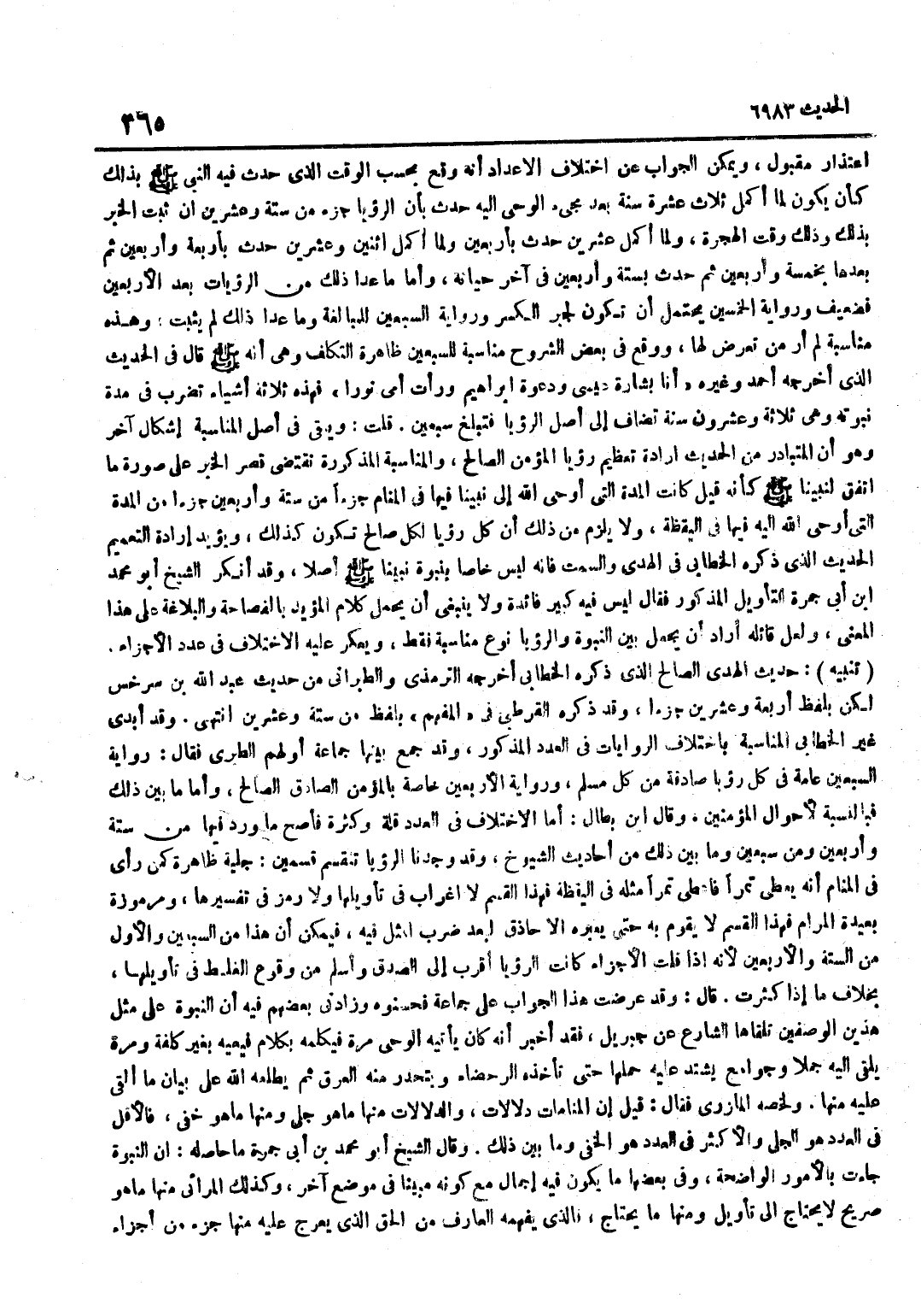 اعْتِذَارٌ مَقْبُولٌ وَيُمْكِنُ الْجَوَابُ عَنِ اخْتِلَافِ الْأَعْدَادِ أَنَّهُ وَقَعَ بِحَسَبِ الْوَقْتِ الَّذِي حَدَّثَ فِيهِ النَّبِيَّ صَلَّى اللَّهُ عَلَيْهِ وَسَلَّمَ بِذَلِكَ كَانَ يَكُونَ لَمَّا أَكْمَلَ ثَلَاثَ عَشْرَةَ سَنَةً بَعْدَ مَجِيءِ الْوَحْيِ إِلَيْهِ حَدَّثَ بِأَنَّ الرُّؤْيَا جُزْءٌ مِنْ سِتَّةٍ وَعِشْرِينَ إِنْ ثَبَتَ الْخَبَرُ بِذَلِكَ وَذَلِكَ وَقت الْهِجْرَة وَلما أكمل عشْرين حدث بِأَرْبَعِينَ وَلَمَّا أَكْمَلَ اثْنَيْنِ وَعِشْرِينَ حَدَّثَ بِأَرْبَعَةٍ وَأَرْبَعِينَ بَعْدَهَا بِخَمْسَةٍ وَأَرْبَعِينَ ثُمَّ حَدَّثَ بِسِتَّةٍ وَأَرْبَعِينَ فِي آخِرِ حَيَاتِهِ وَأَمَّا مَا عَدَا ذَلِكَ مِنَ الرُّؤْيَاتِ بَعْدَ الْأَرْبَعِينَ فَضَعِيفٌ وَرِوَايَةُ الْخَمْسِينَ يَحْتَمِلُ أَنْ تَكُونَ لِجَبْرِ الْكَسْرِ وَرِوَايَةُ السَّبْعِينَ لِلْمُبَالَغَةِ وَمَا عَدَا ذَلِكَ لَمْ يَثْبُتْ وَهَذِهِ مُنَاسَبَةٌ لَمْ أَرَ مَنْ تَعَرَّضَ لَهَا وَوَقَعَ فِي بَعْضِ الشُّرُوحِ مُنَاسَبَةٌ لِلسَّبْعِينَ ظَاهِرَةُ التَّكَلُّفِ وَهِيَ أَنَّهُ صَلَّى اللَّهُ عَلَيْهِ وَسَلَّمَ قَالَ فِي الْحَدِيثِ الَّذِي أَخْرَجَهُ أَحْمَدُ وَغَيْرُهُ أَنَا بِشَارَةُ عِيسَى وَدَعْوَةُ إِبْرَاهِيمَ وَرَأَتْ أُمِّي نُورًا فَهَذِهِ ثَلَاثَةُ أَشْيَاءَ تُضْرَبُ فِي مُدَّةِ نُبُوَّتِهِ وَهِيَ ثَلَاثَةٌ وَعِشْرُونَ سَنَةً تُضَافُ إِلَى أَصْلِ الرُّؤْيَا فَتَبْلُغُ سَبْعِينَ قُلْتُ وَيَبْقَى فِي أَصْلِ الْمُنَاسبَة إِشْكَال آخر وَهُوَ أَن الْمُتَبَادَرُ مِنَ الْحَدِيثِ إِرَادَةُ تَعْظِيمِ رُؤْيَا الْمُؤْمِنِ الصَّالِحِ وَالْمُنَاسَبَةُ الْمَذْكُورَةُ تَقْتَضِي قَصْرَ الْخَبَرِ عَلَى صُورَةِ مَا اتَّفَقَ لِنَبِيِّنَا صَلَّى اللَّهُ عَلَيْهِ وَسَلَّمَ كَأَنَّهُ قِيلَ كَانَتِ الْمُدَّةُ الَّتِي أَوْحَى اللَّهُ إِلَى نَبِيِّنَا فِيهَا فِي الْمَنَامِ جُزْءًا مِنْ سِتَّةٍ وَأَرْبَعِينَ جُزْءًا مِنَ الْمُدَّةِ الَّتِي أَوْحَى اللَّهُ إِلَيْهِ فِيهَا فِي الْيَقَظَةِ وَلَا يَلْزَمُ مِنْ ذَلِكَ أَنَّ كُلَّ رُؤْيَا لِكُلِّ صَالِحٍ تَكُونُ كَذَلِكَ وَيُؤَيِّدُ إِرَادَةَ التَّعْمِيمِ الْحَدِيثُ الَّذِي ذَكَرَهُ الْخَطَّابِيُّ فِي الْهَدْيِ وَالسَّمْتِ فَإِنَّهُ لَيْسَ خَاصًّا بِنُبُوَّةِ نَبِيِّنَا صَلَّى اللَّهُ عَلَيْهِ وَسَلَّمَ أَصْلًا وَقَدْ أَنْكَرَ الشَّيْخُ أَبُو مُحَمَّدِ بْنُ أَبِي جَمْرَةَ التَّأْوِيلَ الْمَذْكُورَ فَقَالَ لَيْسَ فِيهِ كَبِيرُ فَائِدَةٍ وَلَا يَنْبَغِي أَنْ يُحْمَلَ كَلَامُ الْمُؤَيِّدِ بِالْفَصَاحَةِ وَالْبَلَاغَةِ عَلَى هَذَا الْمَعْنَى وَلَعَلَّ قَائِلَهُ أَرَادَ أَنْ يَجْعَلَ بَيْنَ النُّبُوَّةِ وَالرُّؤْيَا نَوْعَ مُنَاسَبَةٍ فَقَطْ وَيُعَكِّرَ عَلَيْهِ الِاخْتِلَافُ فِي عَدَدِ الْأَجْزَاءِ تَنْبِيهٌ حَدِيثُ الْهَدْيِ الصَّالِحِ الَّذِي ذَكَرَهُ الْخَطَّابِيُّ أَخْرَجَهُ التِّرْمِذِيُّ وَالطَّبَرَانِيُّ مِنْ حَدِيثِ عَبْدِ اللَّهِ بْنِ سَرَخْسٍ لَكِنْ بِلَفْظِ أَرْبَعَةٍ وَعِشْرِينَ جُزْءًا وَقَدْ ذَكَرَهُ الْقُرْطُبِيُّ فِي الْمُفْهِمِ بِلَفْظِ مِنْ سِتَّةٍ وَعِشْرِينَ انْتَهَى وَقَدْ أَبْدَى غَيْرُ الْخَطَّابِيِّ الْمُنَاسَبَةَ بِاخْتِلَافِ الرِّوَايَاتِ فِي الْعَدَدِ الْمَذْكُورِ وَقَدْ جَمَعَ بَيْنَهَا جَمَاعَةٌ أَوَّلُهُمُ الطَّبَرِيُّ فَقَالَ رِوَايَةُ السَّبْعِينَ عَامَّةٌ فِي كُلِّ رُؤْيَا صَادِقَةٍ مِنْ كُلِّ مُسْلِمٍ وَرِوَايَةُ الْأَرْبَعِينَ خَاصَّةٌ بِالْمُؤْمِنِ الصَّادِقِ الصَّالِحِ وَأَمَّا مَا بَيْنَ ذَلِك فبالنسبة لأحوال الْمُؤمنِينَ وَقَالَ بن بَطَّالٍ أَمَّا الِاخْتِلَافُ فِي الْعَدَدِ قِلَّةً وَكَثْرَةً فَ