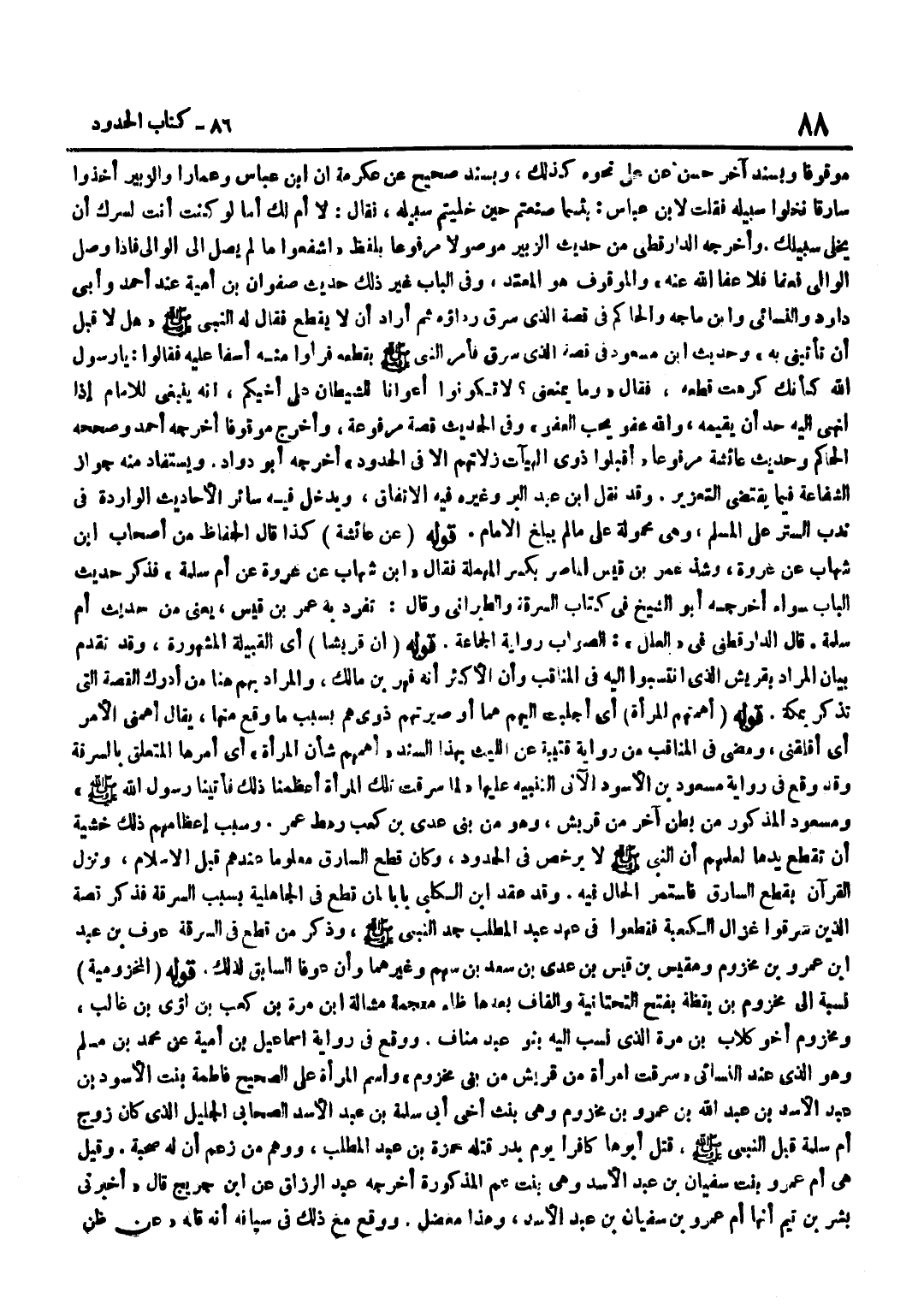 مَوْقُوفًا وَبِسَنَدٍ آخَرَ حَسَنٍ عَنْ عَلِيٍّ نَحْوَهُ كَذَلِك وَبِسَنَد صَحِيح عَن عِكْرِمَة ان بن عَبَّاسٍ وَعَمَّارًا وَالزُّبَيْرَ أَخَذُوا سَارِقًا فَخَلَّوْا سَبِيلَهُ فَقُلْتُ لِابْنِ عَبَّاسٍ بِئْسَمَا صَنَعْتُمْ حِينَ خَلَّيْتُمْ سَبِيلَهُ فَقَالَ لَا أُمَّ لَكَ أَمَا لَوْ كُنْتَ أَنْتَ لَسَرَّكَ أَنْ يُخَلَّى سَبِيلُكَ وَأَخْرَجَهُ الدَّارَقُطْنِيُّ مِنْ حَدِيثِ الزُّبَيْرِ مَوْصُولًا مَرْفُوعًا بِلَفْظِ اشْفَعُوا مَا لَمْ يَصِلْ إِلَى الْوَالِي فَإِذَا وَصَلَ الْوَالِيَ فَعَفَا فَلَا عَفَا اللَّهُ عَنْهُ وَالْمَوْقُوفُ هُوَ الْمُعْتَمَدُ وَفِي الْبَابِ غَيْرُ ذَلِكَ حَدِيثُ صَفْوَانَ بْنِ أُمَيَّةَ عِنْدَ أَحْمَدَ وَأَبِي دَاوُد وَالنَّسَائِيّ وبن مَاجَهْ وَالْحَاكِمِ فِي قِصَّةِ الَّذِي سُرِقَ رِدَاؤُهُ ثُمَّ أَرَادَ أَنْ لَا يَقْطَعَ فَقَالَ لَهُ النَّبِيُّ صَلَّى اللَّهُ عَلَيْهِ وَسَلَّمَ هَل لَا قبل أَن تَأتِينِي بِهِ وَحَدِيث بن مَسْعُودٍ فِي قِصَّةِ الَّذِي سَرَقَ فَأَمَرَ النَّبِيُّ صَلَّى اللَّهُ عَلَيْهِ وَسَلَّمَ بِقَطْعِهِ فَرَأَوْا مِنْهُ أَسَفًا عَلَيْهِ فَقَالُوا يَا رَسُولَ اللَّهِ كَأَنَّكَ كَرِهْتَ قَطْعَهُ فَقَالَ وَمَا يَمْنَعُنِي لَا تَكُونُوا أَعْوَانًا لِلشَّيْطَانِ عَلَى أَخِيكُمْ إِنَّهُ يَنْبَغِي لِلْإِمَامِ إِذَا أُنْهِيَ إِلَيْهِ حَدٌّ أَنْ يُقِيمَهُ وَاللَّهُ عَفُوٌّ يُحِبُّ الْعَفْوَ وَفِي الْحَدِيثِ قِصَّةٌ مَرْفُوعَةٌ وَأُخْرِجَ مَوْقُوفًا أَخْرَجَهُ أَحْمَدُ وَصَحَّحَهُ الْحَاكِمُ وَحَدِيثُ عَائِشَة مَرْفُوعا أَقبلُوا ذَوي الهيآت زَلَّاتِهِمْ إِلَّا فِي الْحُدُودِ أَخْرَجَهُ أَبُو دَاوُدَ وَيُسْتَفَادُ مِنْهُ جَوَازُ الشَّفَاعَةِ فِيمَا يَقْتَضِي التَّعْزِيرَ وَقد نقل بن عَبْدِ الْبَرِّ وَغَيْرُهُ فِيهِ الِاتِّفَاقَ وَيَدْخُلُ فِيهِ سَائِرُ الْأَحَادِيثِ الْوَارِدَةِ فِي نَدْبِ السَّتْرِ عَلَى الْمُسْلِمِ وَهِيَ مَحْمُولَةٌ عَلَى مَا لَمْ يَبْلُغِ الْإِمَامَ قَوْلُهُ عَنْ عَائِشَةَ كَذَا قَالَ الْحُفَّاظُ من أَصْحَاب بن شِهَابٍ عَنْ عُرْوَةَ وَشَذَّ عُمَرُ بْنُ قَيْسٍ الماصر بِكَسْر الْمُهْملَة فَقَالَ بن شِهَابٍ عَنْ عُرْوَةَ عَنْ أُمِّ سَلَمَةَ فَذَكَرَ حَدِيثَ الْبَابِ سَوَاءً أَخْرَجَهُ أَبُو الشَّيْخِ فِي كِتَابِ السَّرِقَةِ وَالطَّبَرَانِيُّ وَقَالَ تَفَرَّدَ بِهِ عُمَرُ بْنُ قَيْسٍ يَعْنِي مِنْ حَدِيثِ أُمِّ سَلَمَةَ قَالَ الدَّارَقُطْنِيُّ فِي الْعِلَلِ الصَّوَابُ رِوَايَةُ الْجَمَاعَةِ قَوْلُهُ إِنَّ قُرَيْشًا أَيِ الْقَبِيلَةَ الْمَشْهُورَةَ وَقَدْ تَقَدَّمَ بَيَانُ الْمُرَادِ بِقُرَيْشٍ الَّذِي انْتَسَبُوا إِلَيْهِ فِي الْمَنَاقِبِ وَأَنَّ الْأَكْثَرَ أَنَّهُ فِهْرُ بْنُ مَالِكٍ وَالْمُرَادُ بِهِمْ هُنَا مَنْ أَدْرَكَ الْقِصَّةَ الَّتِي تُذْكَرُ بِمَكَّةَ قَوْلُهُ أَهَمَّتْهُمُ الْمَرْأَةُ أَيْ أَجَلَبَتْ إِلَيْهِمْ هَمًّا أَوْ صَيَّرَتْهُمْ ذَوِي هَمٍّ بِسَبَبِ مَا وَقَعَ مِنْهَا يُقَالُ أَهَمَّنِي الْأَمْرُ أَيْ أَقْلَقَنِي وَمَضَى فِي الْمَنَاقِبِ مِنْ رِوَايَةِ قُتَيْبَةَ عَنِ اللَّيْثِ بِهَذَا السَّنَدِ أَهَمَّهُمْ شَأْنُ الْمَرْأَةِ أَيْ أَمْرُهَا الْمُتَعَلِّقُ بِالسَّرِقَةِ وَقَدْ وَقَعَ فِي رِوَايَةِ مَسْعُودِ بْنِ الْأَسْوَدِ الْآتِي التَّنْبِيهُ عَلَيْهَا لَمَّا سَرَقَتْ تِلْكَ الْمَرْأَةُ أَعْظَمْنَا ذَلِكَ فَأَتَيْنَا رَسُولَ اللَّهِ صَلَّى اللَّهُ عَلَيْهِ وَسَلَّمَ وَمَسْعُودٌ الْمَذْكُورُ مِنْ بَطْنٍ آخَرَ مِنْ قُرَيْشٍ وَهُوَ مِنْ بَنِي عَدِيِّ بْنِ كَعْبٍ رَهْطِ عُمَرَ وَسَبَبُ إِعْظَامِهِمْ ذَلِكَ خَشْيَةَ أَنْ تُقْطَعَ يَدُهَا لِعِلْمِهِمْ أَنَّ النَّبِيَّ