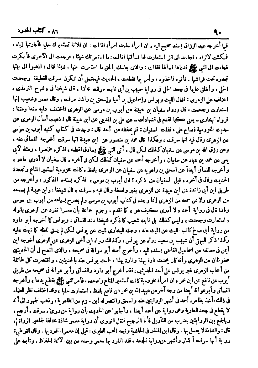 فِيمَا أَخْرَجَهُ عَبْدُ الرَّزَّاقِ بِسَنَدٍ صَحِيحٍ إِلَيْهِ أَنَّ امْرَأَةً جَاءَتِ امْرَأَةً فَقَالَتْ إِنَّ فُلَانَةَ تَسْتَعِيرُكِ حُلِيًّا فَأَعَارَتْهَا إِيَّاهُ فَمَكَثَتْ لَا تَرَاهُ فَجَاءَتْ إِلَى الَّتِي اسْتَعَارَتْ لَهَا فَسَأَلَتْهَا فَقَالَتْ مَا اسْتَعَرْتُكِ شَيْئًا فَرَجَعَتْ إِلَى الْأُخْرَى فَأَنْكَرَتْ فَجَاءَتْ إِلَى النَّبِيِّ صَلَّى اللَّهُ عَلَيْهِ وَسَلَّمَ فَدَعَاهَا فَسَأَلَهَا فَقَالَتْ وَالَّذِي بَعَثَكَ بِالْحَقِّ مَا اسْتَعَرْتُ مِنْهَا شَيْئًا فَقَالَ اذْهَبُوا إِلَى بَيْتِهَا تَجِدُوهُ تَحْتَ فِرَاشِهَا فَأَتَوْهُ فَأَخَذُوهُ وَأَمَرَ بِهَا فَقُطِعَتْ الْحَدِيثَ فَيَحْتَمِلُ أَنْ تَكُونَ سَرَقَتِ الْقَطِيفَةَ وَجَحَدَتِ الْحُلِيَّ وَأُطْلِقَ عَلَيْهَا فِي جَحْدِ الْحُلِيِّ فِي رِوَايَةِ حَبِيبِ بْنِ أَبِي ثَابِتٍ سَرَقَتْ مَجَازًا قَالَ شَيْخُنَا فِي شَرْحِ التِّرْمِذِيِّ اخْتُلِفَ عَلَى الزُّهْرِيِّ فَقَالَ اللَّيْثُ وَيُونُسُ وَإِسْمَاعِيلُ بْنُ أُمَيَّةَ وَإِسْحَاقُ بْنُ رَاشِدٍ سَرَقَتْ وَقَالَ مَعْمَرٌ وَشُعَيْبٌ إِنَّهَا اسْتَعَارَتْ وَجَحَدَتْ قَالَ وَرَوَاهُ سُفْيَانُ بْنُ عُيَيْنَةَ عَنْ أَيُّوبَ بْنِ مُوسَى عَنِ الزُّهْرِيِّ فَاخْتُلِفَ عَلَيْهِ سَنَدًا وَمَتْنًا فَرَوَاهُ الْبُخَارِيُّ يَعْنِي كَمَا تَقَدَّمَ فِي الشَّهَادَاتِ عَنْ عَلِيِّ بن الْمَدِينِيّ عَن بن عُيَيْنَةَ قَالَ ذَهَبْتُ أَسْأَلُ الزُّهْرِيَّ عَنْ حَدِيثِ الْمَخْزُومِيَّةِ فَصَاحَ عَلَيَّ فَقُلْتُ لِسُفْيَانَ فَلَمْ يَحْفَظْهُ عَنْ أَحَدٍ قَالَ وَجَدْتُ فِي كِتَابٍ كَتَبَهُ أَيُّوبُ بْنُ مُوسَى عَنِ الزُّهْرِيِّ وَقَالَ فِيهِ إِنَّهَا سَرَقَتْ وَهَكَذَا قَالَ مُحَمَّدُ بْنُ مَنْصُورٍ عَن بن عُيَيْنَةَ إِنَّهَا سَرَقَتْ أَخْرَجَهُ النَّسَائِيُّ عَنْهُ وَعَنْ رِزْقِ اللَّهِ بْنِ مُوسَى عَنْ سُفْيَانَ كَذَلِكَ لَكِنْ قَالَ أُتِيَ النَّبِيُّ صَلَّى اللَّهُ عَلَيْهِ وَسَلَّمَ بِسَارِقٍ فَقَطَعَهُ فَذَكَرَهُ مُخْتَصَرًا وَمِثْلُهُ لِأَبِي يَعْلَى عَنْ مُحَمَّدِ بْنِ عَبَّادٍ عَنْ سُفْيَانَ وَأَخْرَجَهُ أَحْمَدُ عَنْ سُفْيَانَ كَذَلِكَ لَكِنْ فِي آخِرِهِ قَالَ سُفْيَانُ لَا أَدْرِي مَا هُوَ وَأَخْرَجَهُ النَّسَائِيُّ أَيْضًا عَنْ إِسْحَاقَ بْنِ رَاهْوَيْهِ عَنْ سُفْيَانَ عَنِ الزُّهْرِيِّ بِلَفْظِ كَانَتْ مَخْزُومِيَّةٌ تَسْتَعِيرُ الْمَتَاعَ وَتَجْحَدُهُ الْحَدِيثَ وَقَالَ فِي آخِرِهِ قِيلَ لِسُفْيَانَ مَنْ ذَكَرَهُ قَالَ أَيُّوبُ بْنُ مُوسَى فَذَكَرَهُ بِسَنَدِهِ الْمَذْكُورِ وَأَخْرَجَهُ مِنْ طَرِيقِ بن أبي زَائِدَة عَن بن عُيَيْنَةَ عَنِ الزُّهْرِيِّ بِغَيْرِ وَاسِطَةٍ وَقَالَ فِيهِ سرقت قَالَ شَيخنَا وبن عُيَيْنَةَ لَمْ يَسْمَعْهُ مِنَ الزُّهْرِيِّ وَلَا مِمَّنْ سَمِعَهُ مِنَ الزُّهْرِيِّ إِنَّمَا وَجَدَهُ فِي كِتَابِ أَيُّوبَ بْنِ مُوسَى وَلَمْ يُصَرِّحْ بِسَمَاعِهِ مِنْ أَيُّوبَ بْنِ مُوسَى وَلِهَذَا قَالَ فِي رِوَايَةِ أَحْمَدَ لَا أَدْرِي كَيْفَ هُوَ كَمَا تَقَدَّمَ وَجزم جمَاعَة بِأَن معمرا تَفَرَّدَ عَنِ الزُّهْرِيِّ بِقَوْلِهِ اسْتَعَارَتْ وَجَحَدَتْ وَلَيْسَ كَذَلِكَ بَلْ تَابَعَهُ شُعَيْبٌ كَمَا ذَكَرَهُ شَيْخُنَا عِنْدَ النَّسَائِيِّ وَيُونُسَ كَمَا أَخْرَجَهُ أَبُو دَاوُدَ مِنْ رِوَايَةِ أَبِي صَالِحٍ كَاتِبِ اللَّيْثِ عَنِ اللَّيْثِ عَنْهُ وَعَلَّقَهُ الْبُخَارِيُّ لِلَّيْثِ عَنْ يُونُسَ لَكِنْ لَمْ يَسُقْ لَفْظَهُ كَمَا نَبَّهْتُ عَلَيْهِ وَكَذَا ذَكَرَ الْبَيْهَقِيُّ أَنَّ شَبِيبَ بْنَ سَعِيدٍ رَوَاهُ عَن يُونُس وَكَذَلِكَ رَوَاهُ بن أخي الزُّهْرِيّ عَن الزُّهْرِيّ أخرجه بن أَيْمَنَ فِي مُصَنَّفِهِ عَنْ إِس