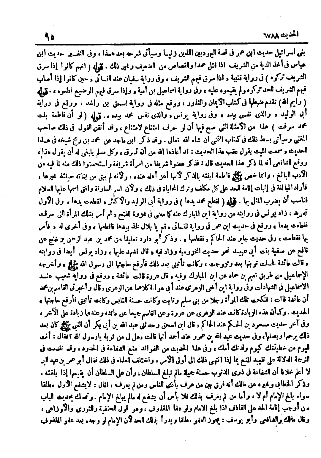 بني إِسْرَائِيل حَدِيث بن عُمَرَ فِي قِصَّةِ الْيَهُودِيَّيْنِ اللَّذَيْنِ زَنَيَا وَسَيَأْتِي شَرحه بعد هَذَا وَفِي التَّفْسِير حَدِيث بن عَبَّاسٍ فِي أَخْذِ الدِّيَةِ مِنَ الشَّرِيفِ إِذَا قَتَلَ عَمْدًا وَالْقِصَاصِ مِنَ الضَّعِيفِ وَغَيْرِ ذَلِكَ قَوْلُهُ إِنَّهُمْ كَانُوا إِذَا سَرَقَ الشَّرِيفُ تَرَكُوهُ فِي رِوَايَةِ قُتَيْبَةَ إِذَا سَرَقَ فِيهِمُ الشَّرِيفُ وَفِي رِوَايَةِ سُفْيَانَ عِنْدَ النَّسَائِيِّ حِينَ كَانُوا إِذَا أَصَابَ فِيهِمُ الشَّرِيفُ الْحَدَّ تَرَكُوهُ وَلَمْ يُقِيمُوهُ عَلَيْهِ وَفِي رِوَايَةِ إِسْمَاعِيلَ بْنِ أُمَيَّةَ وَإِذَا سَرَقَ فِيهِمُ الْوَضِيعُ قَطَعُوهُ قَوْلُهُ وَأَيْمُ اللَّهِ تَقَدَّمَ ضَبْطُهَا فِي كِتَابِ الْأَيْمَانِ وَالنُّذُورِ وَوَقَعَ مِثْلُهُ فِي رِوَايَةِ إِسْحَاقَ بْنِ رَاشِدٍ وَوَقَعَ فِي رِوَايَةِ أَبِي الْوَلِيدِ وَالَّذِي نَفْسِي بِيَدِهِ وَفِي رِوَايَةِ يُونُسَ وَالَّذِي نَفْسُ مُحَمَّدٍ بِيَدِهِ قَوْلُهُ لَوْ أَنَّ فَاطِمَةَ بِنْتَ مُحَمَّدٍ سَرَقَتْ هَذَا مِنَ الْأَمْثِلَةِ الَّتِي صَحَّ فِيهَا أَنَّ لَوْ حَرْفُ امْتِنَاعٍ لِامْتِنَاعٍ وَقَدْ أَتْقَنَ الْقَوْلَ فِي ذَلِكَ صَاحِبُ الْمُغْنِي وَسَيَأْتِي بَسْطُ ذَلِكَ فِي كِتَابِ التَّمَنِّي إِنْ شَاءَ اللَّهُ تَعَالَى وَقد ذكر بن مَاجِدٍ عَنْ مُحَمَّدِ بْنِ رُمْحٍ شَيْخِهِ فِي هَذَا الْحَدِيثِ سَمِعْتُ اللَّيْثَ يَقُولُ عَقِبَ هَذَا الْحَدِيثِ قَدْ أَعَاذَهَا اللَّهُ مِنْ أَنْ تَسْرِقَ وَكُلُّ مُسْلِمٍ يَنْبَغِي لَهُ أَنْ يَقُولَ هَذَا وَوَقَعَ لِلشَّافِعِيِّ أَنَّهُ لَمَّا ذَكَرَ هَذَا الْحَدِيثَ قَالَ فَذَكَرَ عُضْوًا شَرِيفًا مِنِ امْرَأَةٍ شَرِيفَةٍ وَاسْتَحْسَنُوا ذَلِكَ مِنْهُ لِمَا فِيهِ مِنَ الْأَدَبِ الْبَالِغِ وَإِنَّمَا خَصَّ صَلَّى اللَّهُ عَلَيْهِ وَسَلَّمَ فَاطِمَةَ ابْنَتَهُ بِالذِّكْرِ لِأَنَّهَا أَعَزُّ أَهْلِهِ عِنْدَهُ وَلِأَنَّهُ لَمْ يَبْقَ مِنْ بَنَاتِهِ حِينَئِذٍ غَيْرُهَا فَأَرَادَ الْمُبَالَغَةَ فِي إِثْبَاتِ إِقَامَةِ الْحَدِّ عَلَى كُلِّ مُكَلَّفٍ وَتَرْكِ الْمُحَابَاةِ فِي ذَلِكَ وَلِأَنَّ اسْمَ السَّارِقَةِ وَافَقَ اسْمَهَا عَلَيْهَا السَّلَامُ فَنَاسَبَ أَنْ يُضْرَبَ الْمَثَلُ بِهَا قَوْلُهُ لَقَطَعَ مُحَمَّدٌ يَدَهَا فِي رِوَايَةِ أَبِي الْوَلِيدِ وَالْأَكْثَرُ لَقَطَعْتُ يَدَهَا وَفِي الْأَوَّلِ تَجْرِيدٌ زَادَ يُونُسُ فِي رِوَايَته من رِوَايَة بن الْمُبَارَكِ عَنْهُ كَمَا مَضَى فِي غَزْوَةِ الْفَتْحِ ثُمَّ أَمَرَ بِتِلْكَ الْمَرْأَةِ الَّتِي سَرَقَتْ فَقُطِعَتْ يَدهَا وَوَقع فِي حَدِيث بن عُمَرَ فِي رِوَايَةٍ لِلنَّسَائِيِّ قُمْ يَا بِلَالُ فَخُذْ بِيَدِهَا فَاقْطَعْهَا وَفِي أُخْرَى لَهُ فَأَمَرَ بِهَا فَقُطِعَتْ وَفِي حَدِيثِ جَابِرٍ عِنْدَ الْحَاكِمِ فَقَطَعَهَا وَذَكَرَ أَبُو دَاوُدَ تَعْلِيقًا عَنْ مُحَمَّدِ بْنِ عَبْدِ الرَّحْمَنِ بْنِ غَنْجٍ عَنْ نَافِعٍ عَنْ صَفِيَّةَ بِنْتِ أَبِي عُبَيْدٍ نَحْوَ حَدِيثِ الْمَخْزُومِيَّةِ وَزَادَ فِيهِ قَالَ فَشَهِدَ عَلَيْهَا وَزَادَ يُونُسُ أَيْضًا فِي رِوَايَتِهِ قَالَتْ عَائِشَةُ فَحَسُنَتْ تَوْبَتُهَا بَعْدُ وَتَزَوَّجَتْ وَكَانَتْ تَأْتِينِي بَعْدَ ذَلِكَ فَأَرْفَعُ حَاجَتَهَا إِلَى رَسُولِ اللَّهِ صَلَّى اللَّهُ عَلَيْهِ وَسَلَّمَ وَأَخْرَجَهُ الْإِسْمَاعِيلِيُّ مِنْ طَرِيقِ نُعَيْمِ بْنِ حَمَّادٍ عَنِ بن الْمُبَارَكِ وَفِيهِ قَالَ عُرْوَةُ قَالَتْ عَائِشَةُ وَوَقَعَ فِي رِوَايَةِ شُعَيْبٍ عِنْدَ الْإِسْمَاعِيلِيِّ فِي الشَّهَادَاتِ وَفِي رِوَايَة بن أَخِي الزُّهْرِيِّ عِنْدَ أَبِي عَوَانَةَ كِلَاهُمَا عَنِ الزُّهْرِيِّ قَالَ وَأَخْبَرَنِي الْقَاسِم