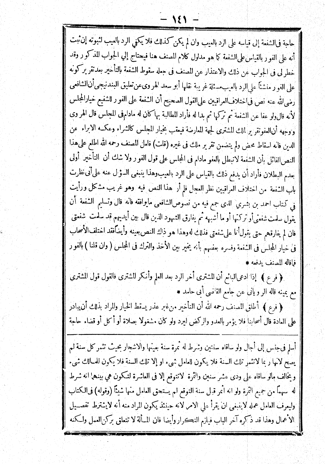 أسلم في جنس إلى أجال ولو ساقاه سنتين وشرط له ثمرة سنة بعينها والاشجار بحيث تثمر كل سنة لم يصح لانها ربما لا تثمر تلك السنة فلا يكون للعامل شئ أو إلا تلك السنة فلا يكون للمالك شئ ويخالف مالو ساقاه على ودى عشر سنين والثمرة لا تتوقع إلا في العاشرة لتكون هي بينهما انه شرط له سهما من جميع الثمرة ولو انه اثمر قبل سنة التوقع لم يستحق العامل منها شيئا (وقوله) في الكتاب وليعرف العامل عمله لا ينبغى ان يقرأ على الامر لانه حينئذ يكون المراد منه أنه لا يشترط تفصيل الاعمال وهذا قد ذكره آخر الباب فيلزم التكرار وأيضا فان المسألة لا تتعلق بركن العمل ولكنه