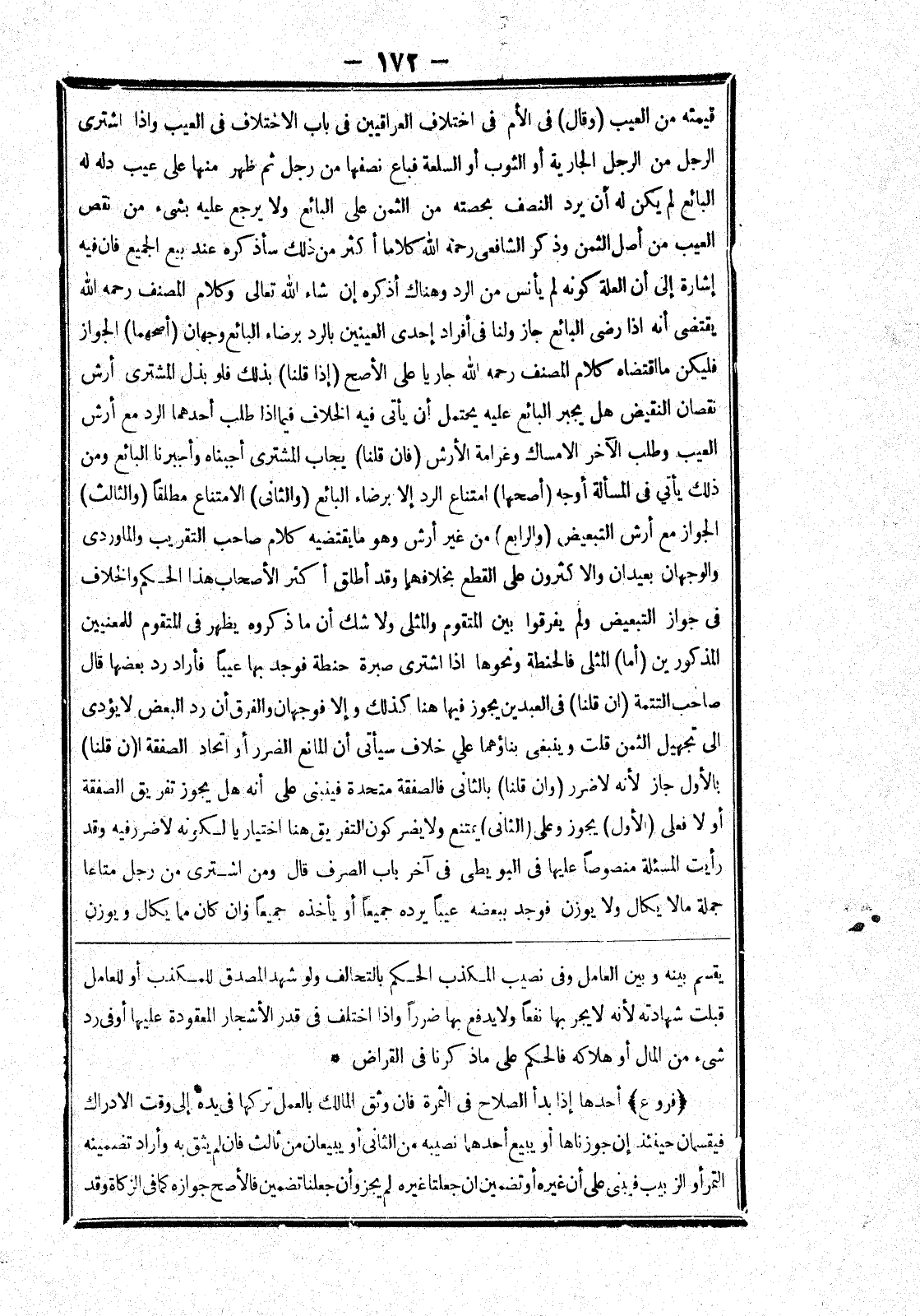 قبلت شهادته لانه لايجر بها نفعا ولا يدفع بها ضررا وإذا اختلف في قدر الاشجار المعقودة عليها أو في رد شئ من المال أو هلاكه فالحكم على ما ذكرنا في القراض * (فروع) أحدها إذا بدأ الصلاح في الثمرة فان وثق المالك بالعمل تركها في يده إلى وقت الادراك فيقسمان حينئذ إن جوزناها أو يبيع أحدهما نصيبه من الثاني أو يبيعان من ثالث فان لم يثق به وأراد تضمينه التمر أو الزبيب فيبنى على أن غيره أو تضمين ان جعلتا غيره لم يجزو أن جعلنا تضمين فالاصح جوازه كما في الزكاة وقد