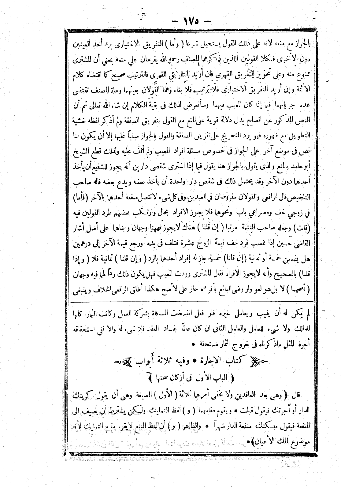 لم يكن له أن ينيب ويعامل غيره فلو فعل انفسخت المساقاة بشركة العمل وكانت الثمار كلها للمالك ولا شئ للعامل والعامل الثاني ان كان عالما بفساد العقد فلا شئ له والا ففى استحقاقه أجرة المثل ما ذكرناه في خروج الثمار مستحقة * (كتاب الاجارة * وفيه ثلاثة أبواب) (الباب الاول في أركان صحتها) قال (وهى بعد العاقدين ولا يخفى أمرهما ثلاثة (الاول) الصيغة وهى أن يقول اكريتك الدار أو أجرتك فيقول قبلت * ويقوم مقامهما (و) لفظ التمليك ولكن يشترط أن يضيف إلى المنفعة فيقول ملكتك منفعة الدار شهرا * والظاهر (و) أن لفظ البيع لا يقوم مقام التمليك لانه موضوع لملك الاعيان) *